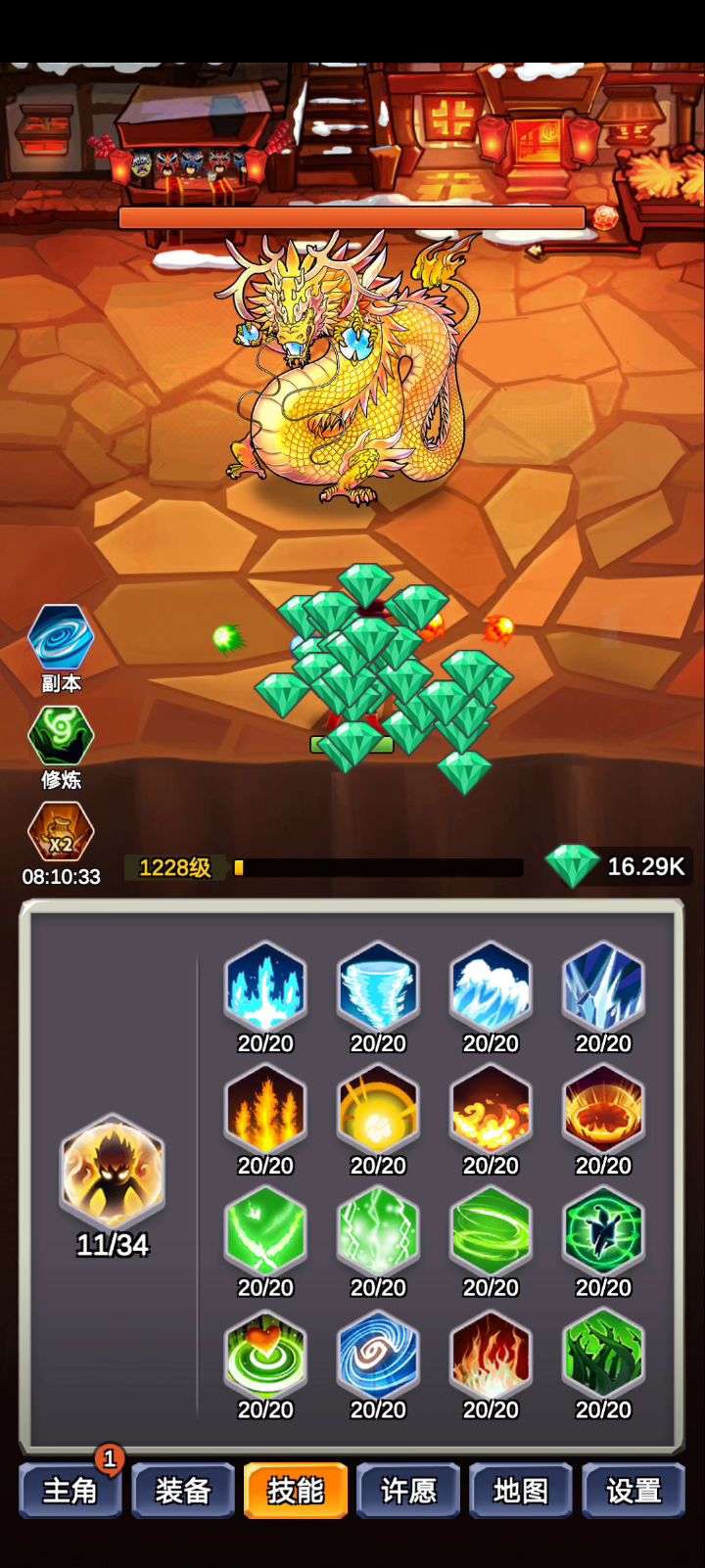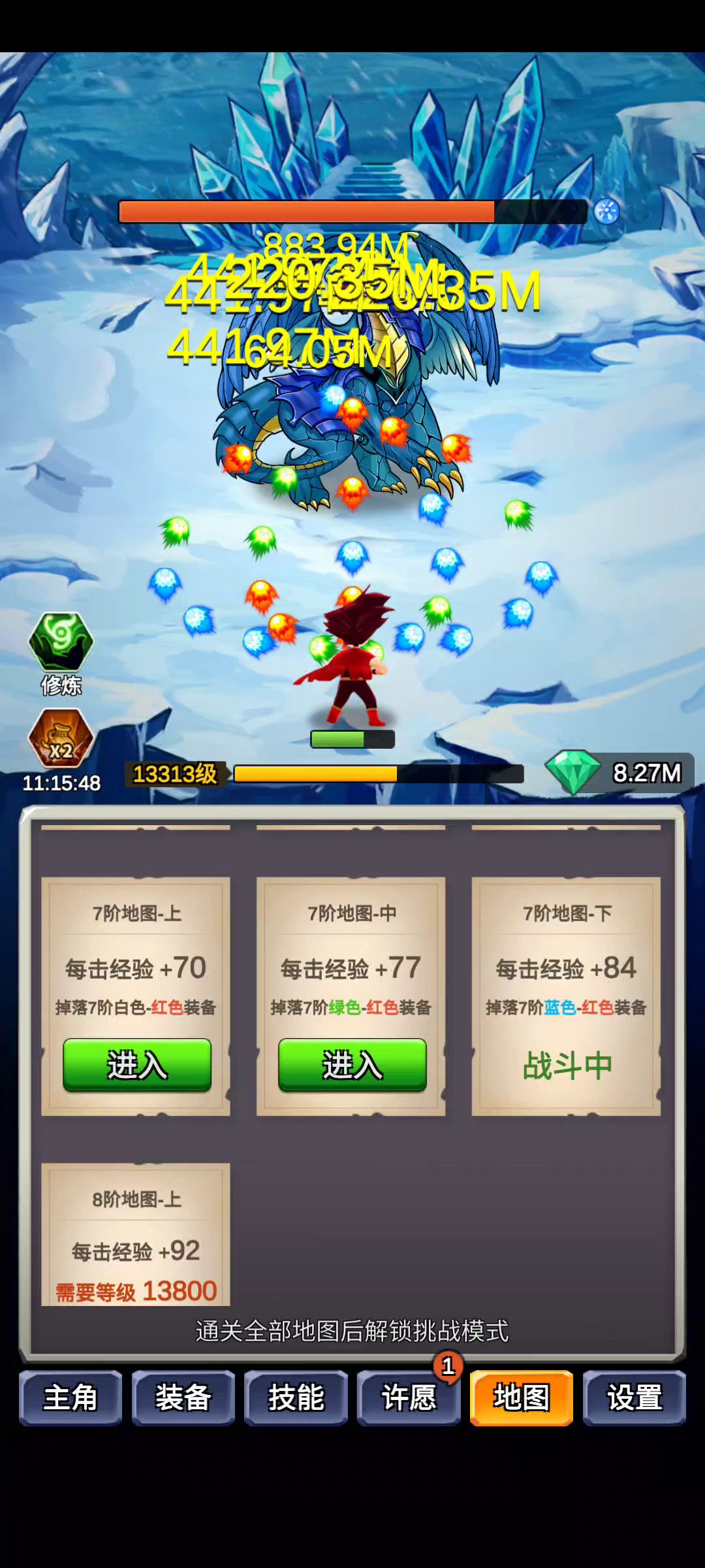 要经验肯定敏捷套,站得住,快速升级。刷装备就用反击,但是很刺激,跟BOSS五五开。可惜水神套速度不够,就不演示了。水神站得住打的又快,可惜对装备要求高,水系掌控+水龙卷+满速,太难了