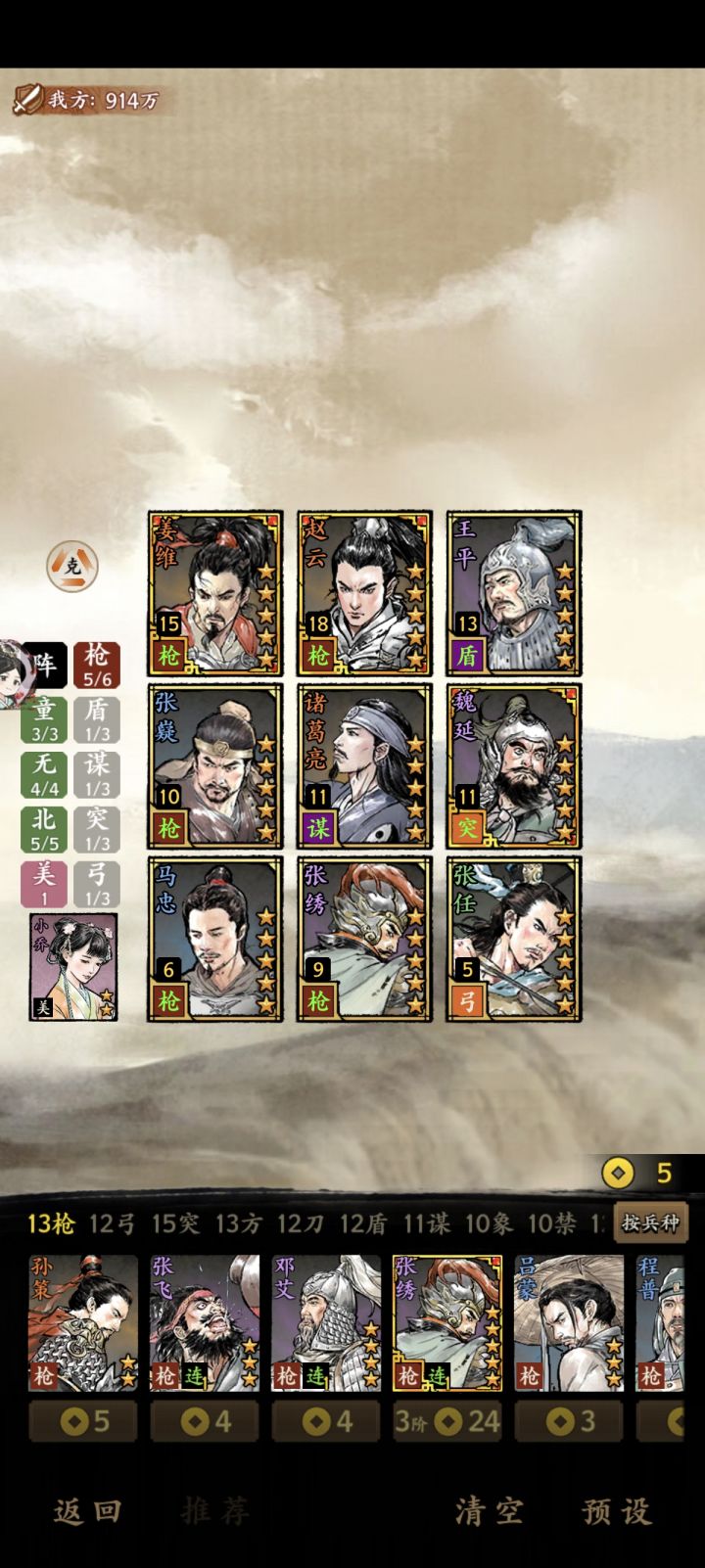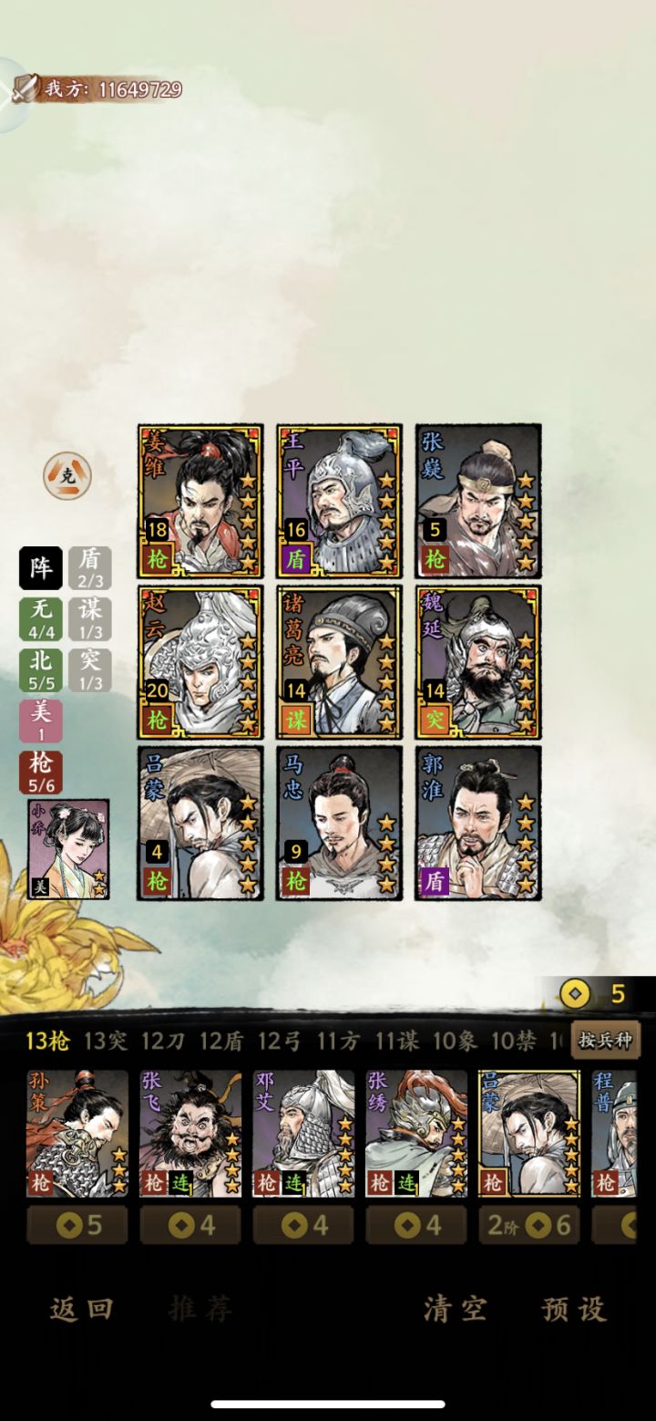 再补充下为啥只推荐练铁甲浮屠和兵法大家,这游戏伤害分为直接伤害(简称直伤)和间接伤害(简称间伤),没明确说明的话都属于直伤,直伤会被对面的防御影响,会被免伤影响,而铁甲浮屠能叠90免伤,项羽又是高防御,其他阵容很难打得动,队伍里又有吕布高爆发,攻守兼备,常用于竞技场。下面讲间伤,间伤可以看做一种负面状态,一般不吃暴击爆伤,还有概率挂不上。间伤里火伤阵容比较完善,火伤看上去只跟自己的15%攻击有关,但可以被袁术陆逊等人加强,兵法大家韩信直伤控制挂火,周瑜引燃一次,第四人再引燃一次,敌人动再燃一次,伤害爆炸还不会被高额减免,常用于推图斩将练兵汉中大战等。有资源就往这两套阵容投,准没错。