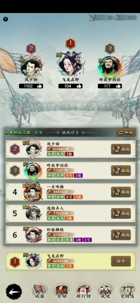 在没有别的羁绊情况下目前只能先这样阵容770万对1000万4督有胜率,4星现在能秒曹操,等五星赵云拿什么抵抗我。