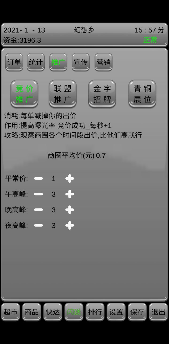 玩了两天,分屏玩其他的,一直刷,终于是毕业了,前期规模买完烟就可以了,其他的可以先放放,主点装修和店,副点补货和仓库,烟是大头,利润很高,70级的时候每天有个十几万。 美团全部拉满后就不用看了,10个单大概有个2-3个是亏钱的,亏也不亏很多,就一块钱左右(我看到我自己亏的),后面就一直等它刷钱升级就可以了😁