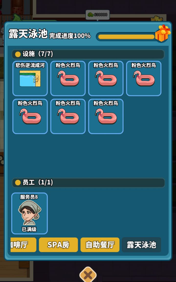 还更新吗?不更新就把游戏下架了吧。。全部满星以后特别无聊。。而且系统内还有bug。。累计一个满级员工这块不显示。。我所有员工都满级了结果这个任务还是显示未完成。。
