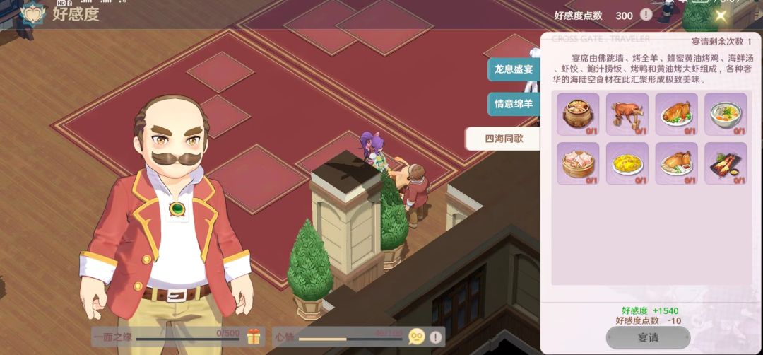 各位勇者大大好呀~今天我们来给大家介绍一下众生相宴席中的四海同歌!这个宴席汇聚了各种奢华的海陆空食材,极致美味等你来享,而且加的好感度也特别多哦~希望对大家有帮助~ 本篇攻略来自大神勇者 【苒苒】,也欢迎大家踊跃投稿其他食谱~ 四海同歌由佛跳墙、烤全羊、蜂蜜黄油烤鸡、海鲜汤、虾饺、鲍汁捞饭、黄油烤大虾、烤鸭组成。 其中佛跳墙、烤全羊、鲍汁捞饭是高级料理,需要分数达到600成为资深大厨师才可以做。烤