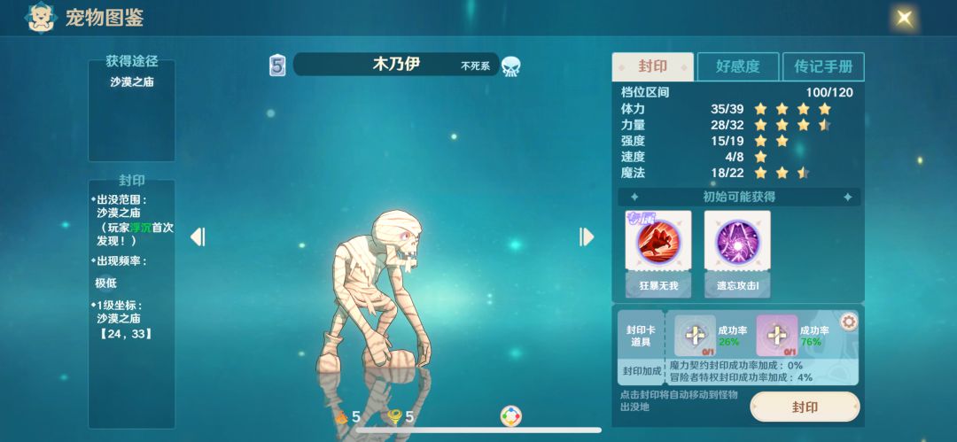 魔力宝贝的宠物是非常吸引人的玩法之一,野外抓宠乐趣多多,有了心仪的宠物之后可以重点培养,成为与自己并肩作战的好伙伴。 目前宠物的数量非常多,从图鉴可以看出有128种等待解锁,且分布在不同的地图,伴随着升级,全都有机会遇到哦。 抓宠前要获得该宠物的图鉴卡,便可激活捕捉权限。 金质封印卡银质封印卡都可以用来抓宠,前者成功率更高,大家想要什么宠物,可以直接去它的出没范围挂机,当出现允许被捕捉的一级宠物时