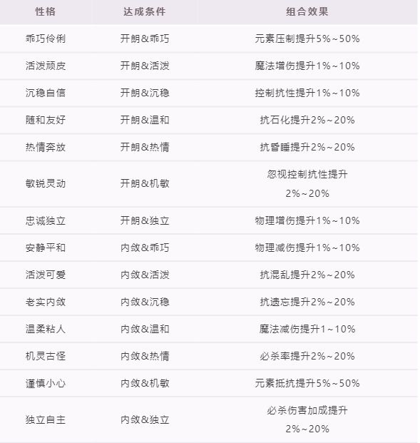 宠物性格及其所需达成的性格特征&加成效果