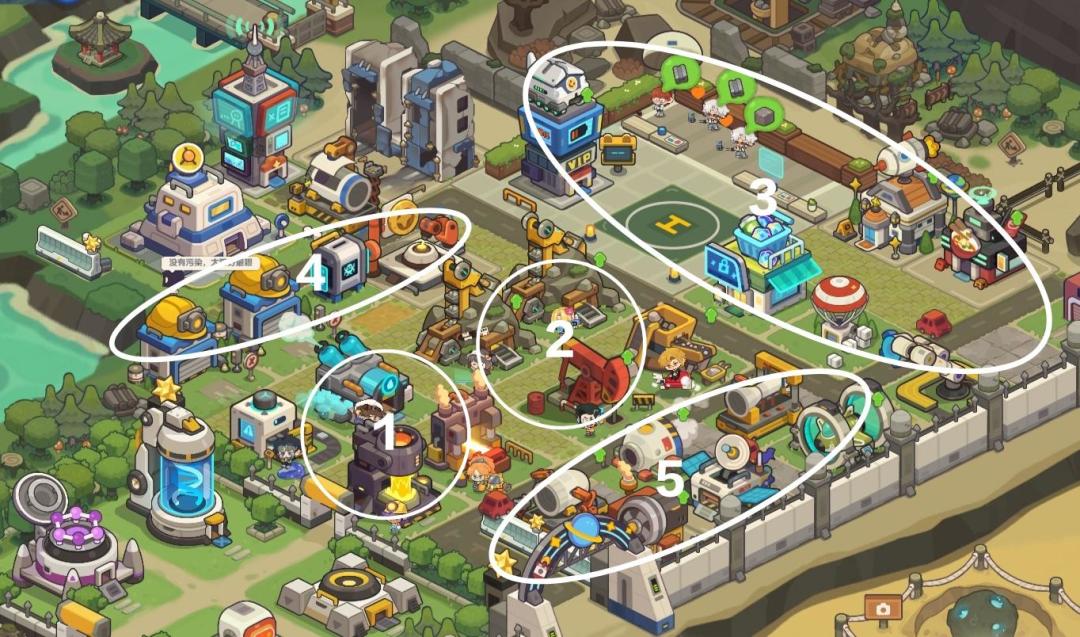 刚开始跟着新手教程一通点,各种建筑乱七八糟挤了一堆,结果回过头来发现什么东西放哪了完全不清楚,于是为了后期方便把建筑布局重新调整了一下,不过我现在东西比较少,可能参考价值不是很大,只是提供一下思路吧(如图): 1.资源加工区:对基础资源进行二次加工的建筑(常用) 2.基础资源区:直接产出资源的建筑放在了一起(常用) 3.商业购物区:订单交付、游客建筑等(赚钱/花钱的) 4.员工休息区:施工车停放处