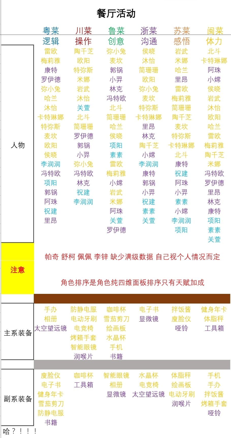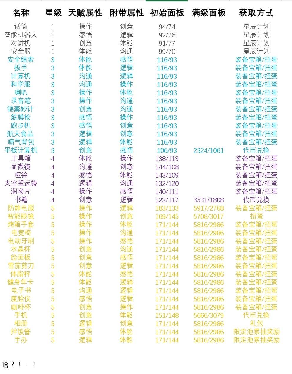 装备数据表格(不完整 慢慢更新中)