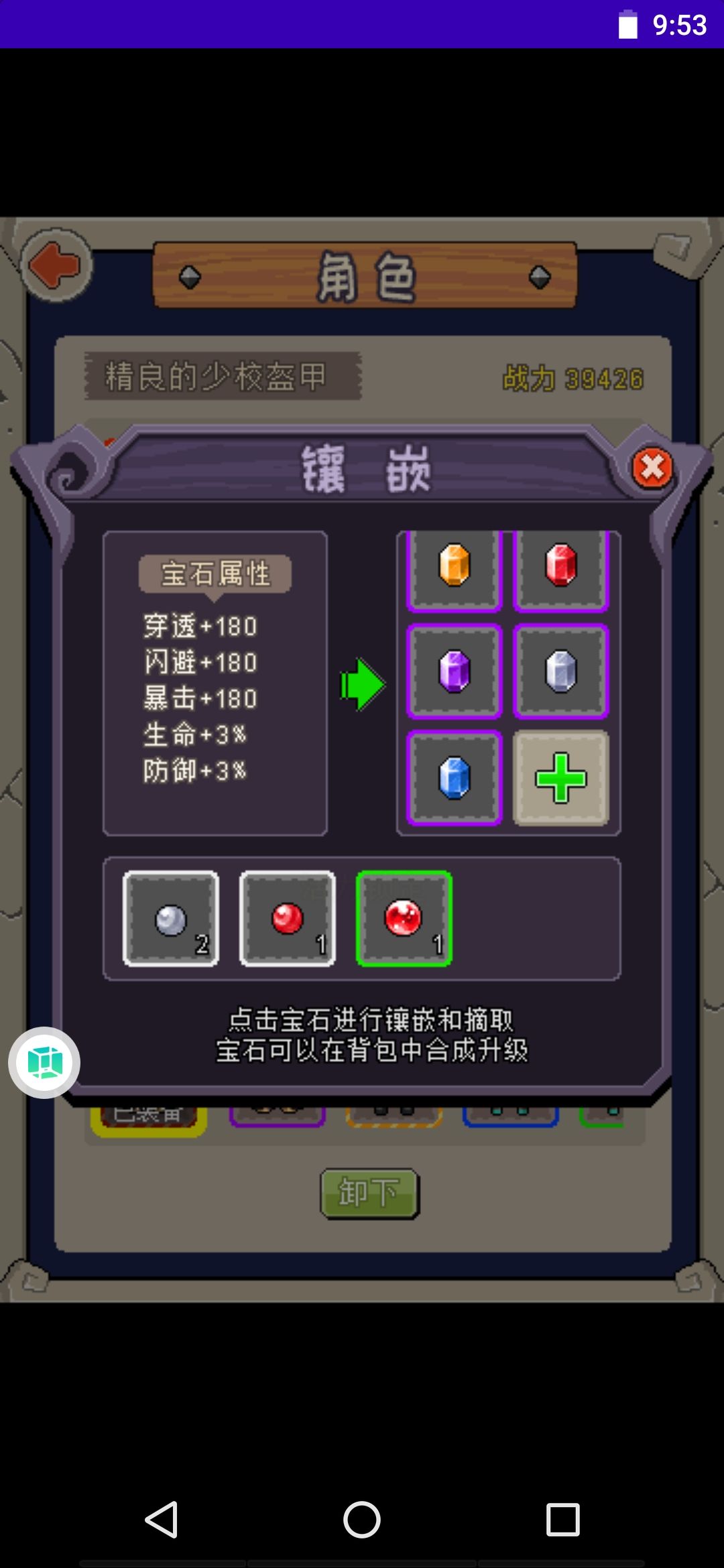 这是一款类似贪婪洞穴刷刷刷的游戏,虽说少了一些随机性,但也不是无脑刷,每张图都设置了一个通关战力要求,这就给玩家带来了一定的难度和趣味性! 往往有许多玩家都会在boss处抓耳挠腮,当然提升战力的方法有许多,我个人认为宝石是最简单,最快提升战力方法! 话不多说,进入正题! 宝石分别: 生命(1级0.5%)(2级1%)(3级1.5%) 攻击(1级0.5%)(2级1%)(3级1.5%) 防御(1级0.5