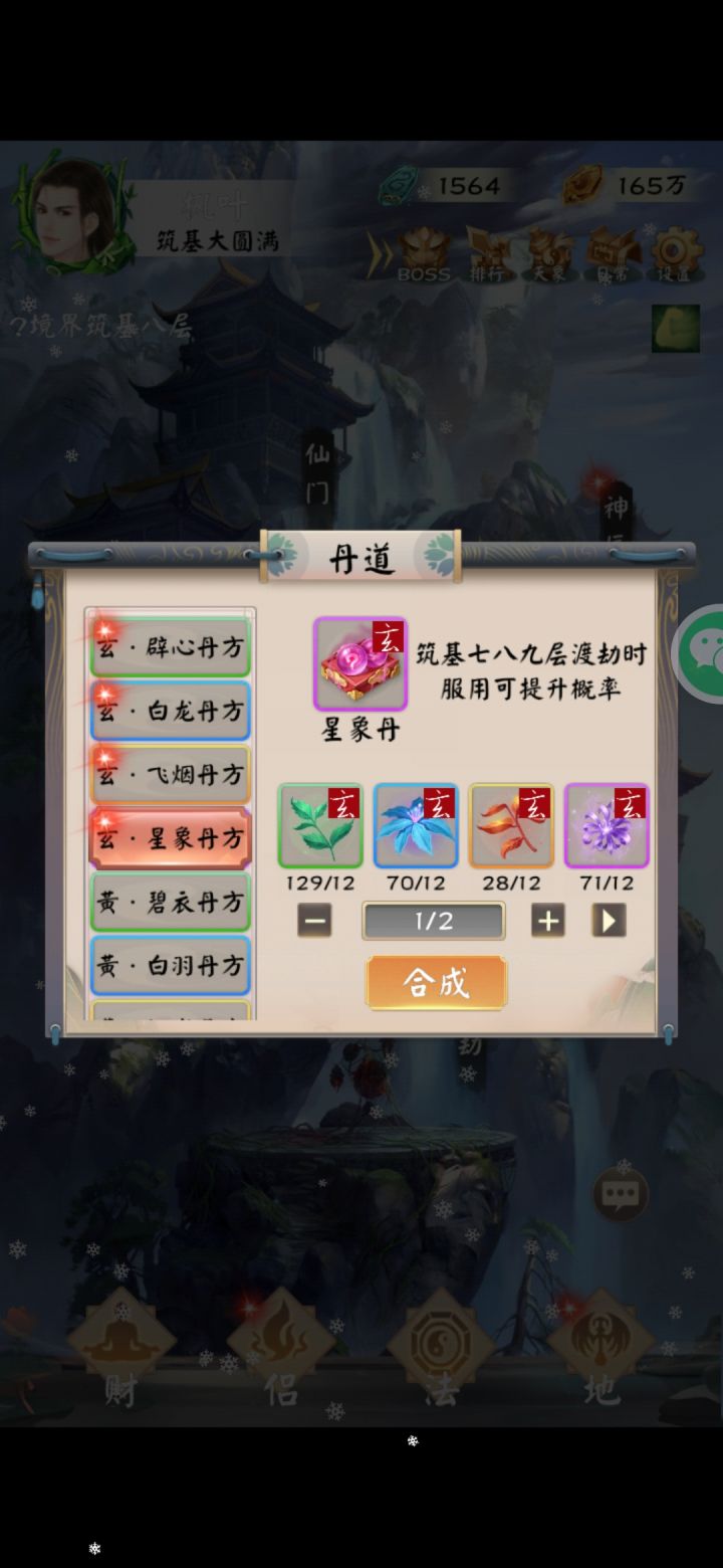 上次写了个练气攻略,这次筑基的来了ps:更新后有护道功能,大大减少了丹药消耗,需要的药材量文中的已经不对了,我也懒得重新算,仅供参考。写的不完善的地方提出来我会尽力完善,毕竟一边玩一边写有的地方细节可能忘了码在看这帖子的时候可能有的人已经练气大圆满了,说一下前话,之前有人提练气的装备问题,这里稍微说一下。现在大更新以后当然有强化石就尽量强化,在出售装备百分百返还玉髓的当下,这东西当然是早点