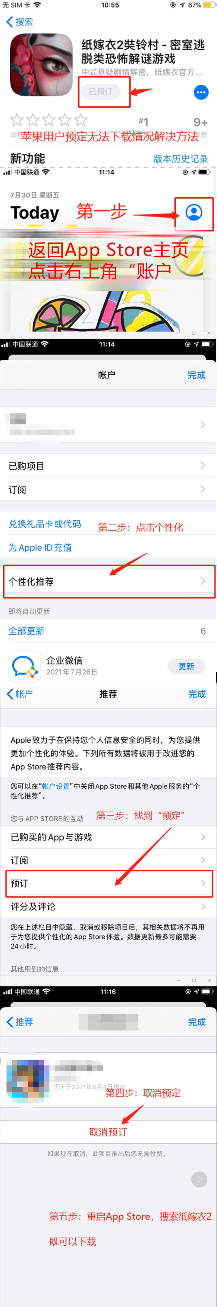 ios之前预订了无法下载的玩家可以在AppStore 主界面点击右上角头像-个性化推荐-预定中取消预订《纸嫁衣2奘铃村》就可以下载。关于游戏没有声音,可以检查一下手机是否开启了静音模式,使用蓝牙耳机也有几率使游戏没有声音。安卓系统版本6.0以下有可能会进入不了游戏,建议升级系统或者更换设备。