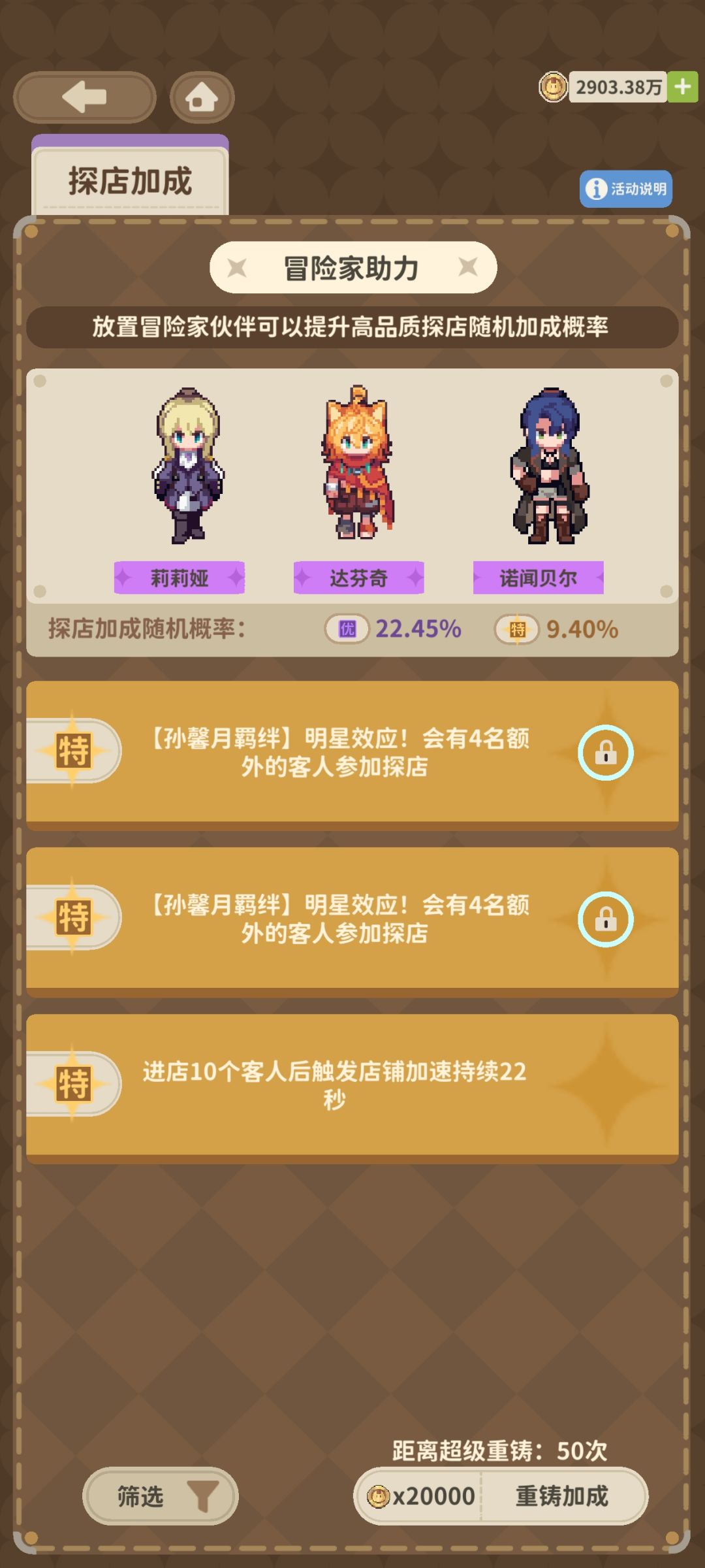 大家刚刚开始跟着引导走,这时候熟悉一下,然后下面就讲解一下个人经验: 一.关于人物,有4种属性 1.采集:影响探索跑图的骰子次数,比如第1个探索,每次投骰子需要7点采集 2.厨艺:影响做菜速度 3.热情:影响服务...个人理解是影响 门厅 ,大门拉客人? 4.速度:...这个我理解是影响传菜速度? (以上如有错,勿怪) 二.关于开服池子建议 1.优先抽 魔洛克 和 妹留 2.次级抽 克里,最后奥马