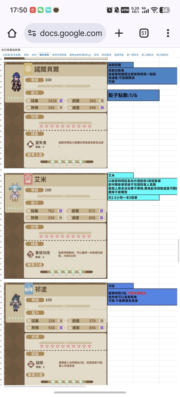 大家刚刚开始跟着引导走,这时候熟悉一下,然后下面就讲解一下个人经验:一.关于人物,有4种属性1.采集:影响探索跑图的骰子次数,比如第1个探索,每次投骰子需要7点采集2.厨艺:影响做菜速度3.热情:影响服务...个人理解是影响 门厅 ,大门拉客人?4.速度:...这个我理解是影响传菜速度?(以上如有错,勿怪)二.关于开服池子建议1.优先抽 魔洛克 和 妹留2.次级抽 克里,最后奥马
