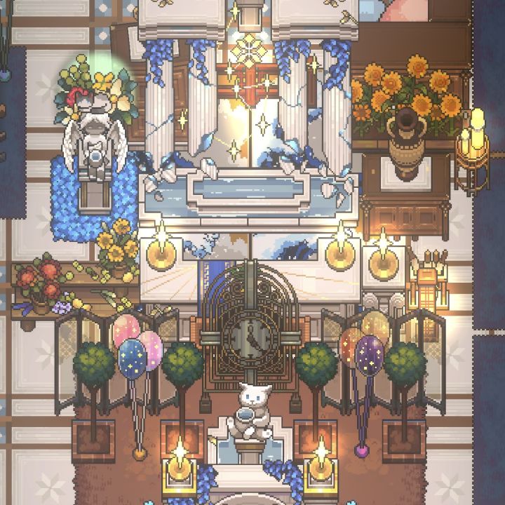 #夏日像素咖啡店 各位走过路过不要错过这里有可爱的店长✨华丽的钢琴✨优雅的屋内水池✨为什么要放在这里的宠物窝✨意义不明的地毯✨绝对不是我不会装修✨✨