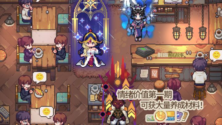 🗨️剧情丰富度:题材确实挺新颖的,在人类世界开了一家非人类接待人类顾客的咖啡馆,偶尔也会有非人类光临,但这基本都在剧情里才会光顾了。说是非人类是因为,里面有恶魔,也有其他存在,但不是人类,所以就第一反应叫非人类了。🌃画面音乐:音乐特别欢快!很治愈~画面很可爱,立绘基本都特别漂亮,虽然有一两个可能因为审美不一样稍微不太喜欢,但基本我都很喜欢!特别是猫猫!好猫猫!!!🥰像素风也很好看,加上我