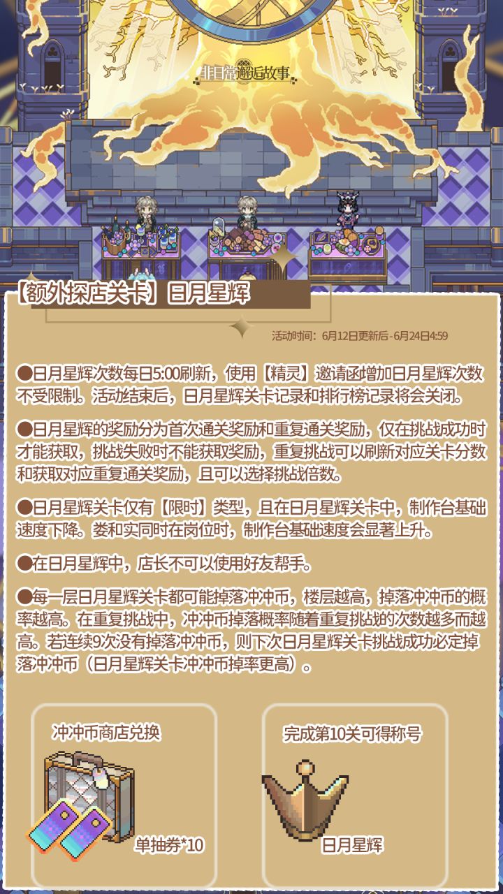 【维护公告】因调整切后台断线问题,我们维护时间预计延迟到8:00-9:00,延长维护补偿新增抽卡券*5 版本更新时间:6月12日上午8:00-8:20 维护补偿:不醉石*200 ★限时卡池「飞翼灵犀」全新角色娄,实限时UP! 时间:2025年6月12日更新后 - 2025年7月3日4:59 ★娄和实电话簿实装,他们会带来怎样的故事呢。 ★艾珀利欧商城小小伙伴新增:娄和实。 ★探店活动关卡【日月星辉
