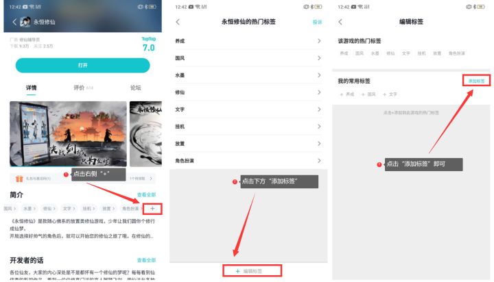 《永恒修仙》现开启标签征集活动,希望各位仙友踊跃参与,为永恒修仙添加符合游戏特色的标签,参与活动即可领取十连抽礼包!【活动内容】打开永恒修仙 TapTap专区,为《永恒修仙》专区添加标签,将截图发在本贴下方,并加群私聊管理员即可领取十连抽礼包!!【标签参考】剧情、竖屏、古风、探索、社交、多人、策略、冒险【活动时间】即日起至1月25日【活动奖品】游戏礼包:天荒剑令*10、初阶探宝令