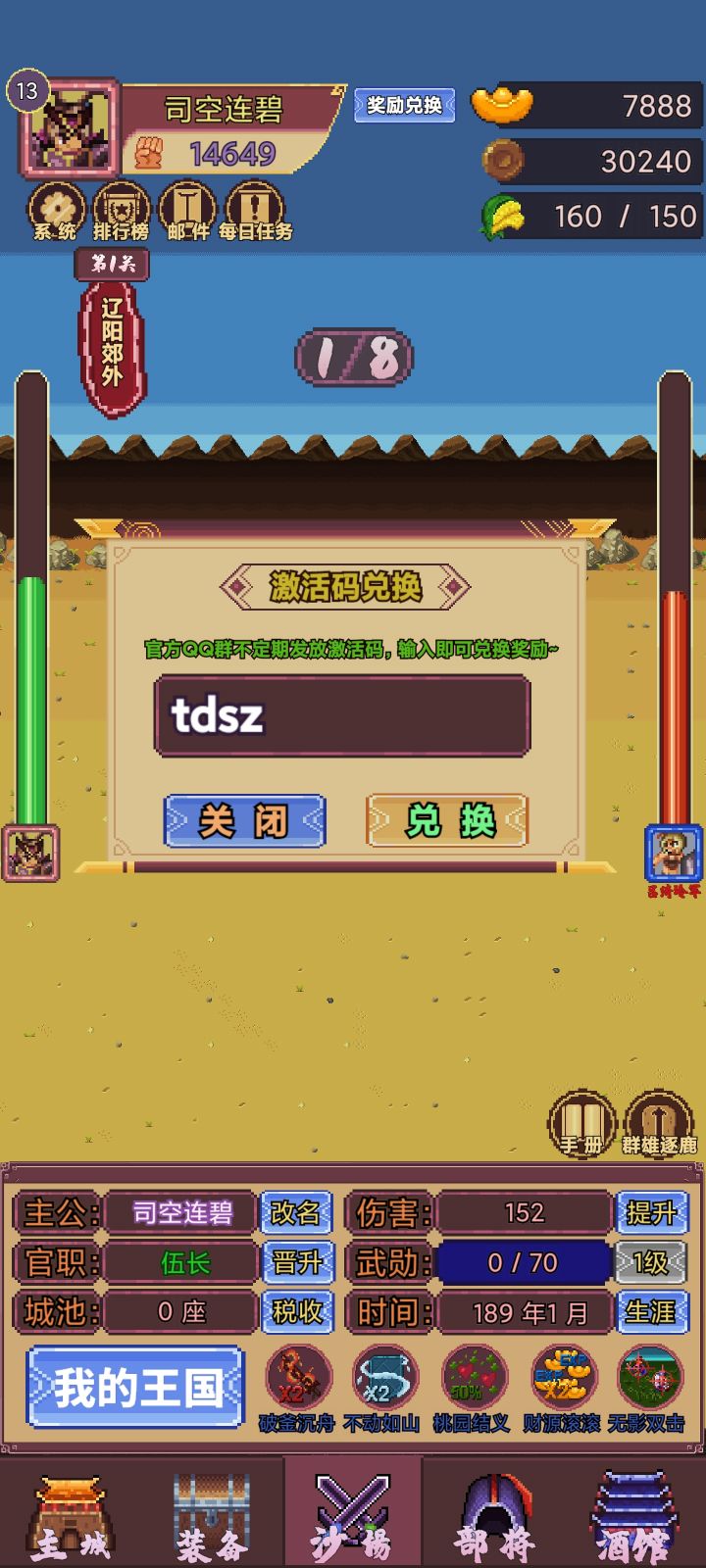 总体评价:游戏还行,值得探索的东西挺多,武将,装备能有很多细节性的配置,能拉开玩家间的差距。