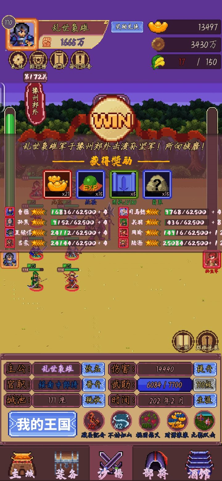 总体评价:游戏还行,值得探索的东西挺多,武将,装备能有很多细节性的配置,能拉开玩家间的差距。