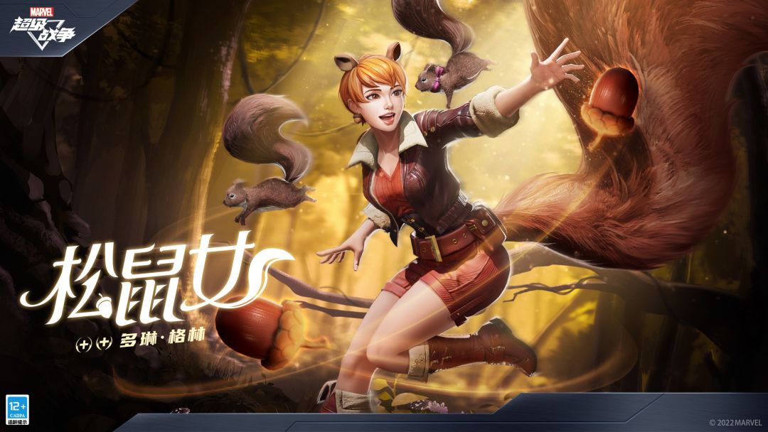 #漫威超级战争##松鼠女# 瓦坎达战场上硝烟四起, 巨大的松鼠从天而降,把敌人砸得眼冒金星。 嘿,吓到了吗? 这可是多琳·格林的小伙伴,厉害的松鼠“小脚丫”! 尾巴蓬蓬的松鼠女孩在战场上蹦蹦跳跳,带领着松鼠小分队勇敢出击! 肃杀的战场仿佛增添了独特的活力。 和无敌的松鼠女孩一起打倒坏蛋吧~ 小心,不要被毛茸茸的松鼠军团淹没哦! “打倒坏蛋,就能回家吃坚果啦!” 全新辅助型英雄「松鼠女」即将在11月3日维护后与大家见面,同时商店中将收录其外观[漫画经典],11月3日至11月9日,各位观察者可购买[松鼠女资料礼包],同时招募该英雄并解锁外观,上架首周更有7折优惠,最低仅需542星际币! 【技能描述】 英雄特质[橡果满载] 被动:松鼠女会提升自身及周围生命值最低的友方英雄双抗。 被动-橡果标记:松鼠女的普攻命中敌方英雄时会为其添加[橡果印记],使其受到减治疗效果并降低物理防御,叠满后对目标造成伤害与眩晕效果。 1技能[橡果大追击] 松鼠女向指定方向投掷橡果,对命中的敌人造成伤害并为其添加[橡果印记]。一定时间内松鼠女可以再次释放此技能,带领松鼠向标记目标突进并造成伤害。 2技能[松鼠小分队] 松鼠女在指定位置召唤1只处于[玩耍状态]的小松鼠,期间小松鼠无法被选中且不会主动攻击,并会暴露自身周围敌人视野。 敌方英雄靠近[玩耍状态]下的小松鼠时,小松鼠进入[警觉状态],期间可以被选中并会攻击周围敌人。 3技能[松鼠蹦蹦蹦] 被动:松鼠女跳跃会刷新落点范围内松鼠的存在时间并提升其攻速与移动速度。 主动:松鼠女向指定位置跳跃,当落点范围内有敌人或友方单位时,松鼠女获得护盾并可以立即再跳跃1次,同时减少此技能冷却时间。松鼠女跳跃会对落点范围内的敌人造成伤害和减速,同时为落点范围内的友方英雄提供护盾。 终极技能[松鼠出击!] 松鼠女在原地召唤1只大松鼠。大松鼠落地时造成范围伤害和击飞,且存在期间持续攻击周围敌人。 *展示视频为测试版本,以实际上线效果为准*