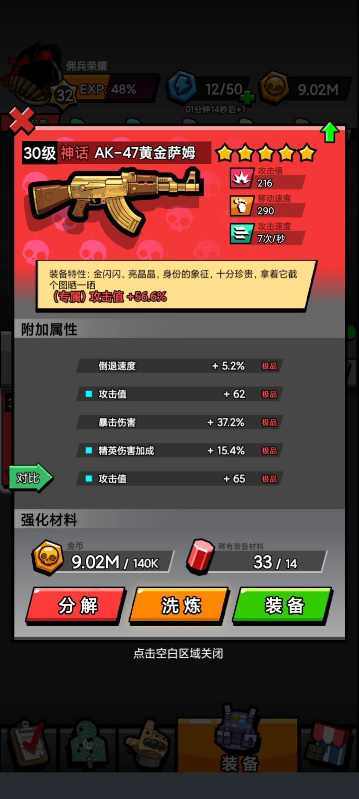 为了让佣兵小伙伴们能有更好的游戏体验感,我们在不断更新版本、强化装备。以下的装备都强化了攻击速度,最最最大的变化就是每把枪支的子弹都有各自不同的闪光点哦。1、 火神加特林初始属性移动速度:210攻击速度:8次/秒(专属)百分比攻击值加成攻略:加特林专属攻击值高达59%以上,主要特点是击中敌人额外产生2颗跟踪子弹、沉重、射速快、子弹多,适用于群攻和打boss。2、MD-X毁灭者初始属性移