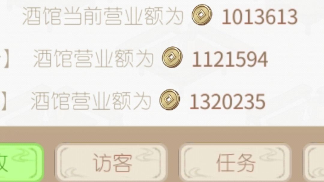 10月4号:国庆活动,关于酒馆的活动任务,有人一天刷新2次活动任务,有人一天只刷新一次活动任务(遇到这情况,确保刷新时间到了,没看到刷新就下线重登,大概率能解决),此异常问有经验的玩家好过问群管理,管理记录和反馈了个寂寞。 ps:砍树活动白嫖是可以到8级的。 9月24号:更新一波客栈离线收益(客栈收益其实还不错,就是得材料和调料都齐全,且数量存货多多才能搞) 昨晚和客服确认了下,离线8小时的金币数