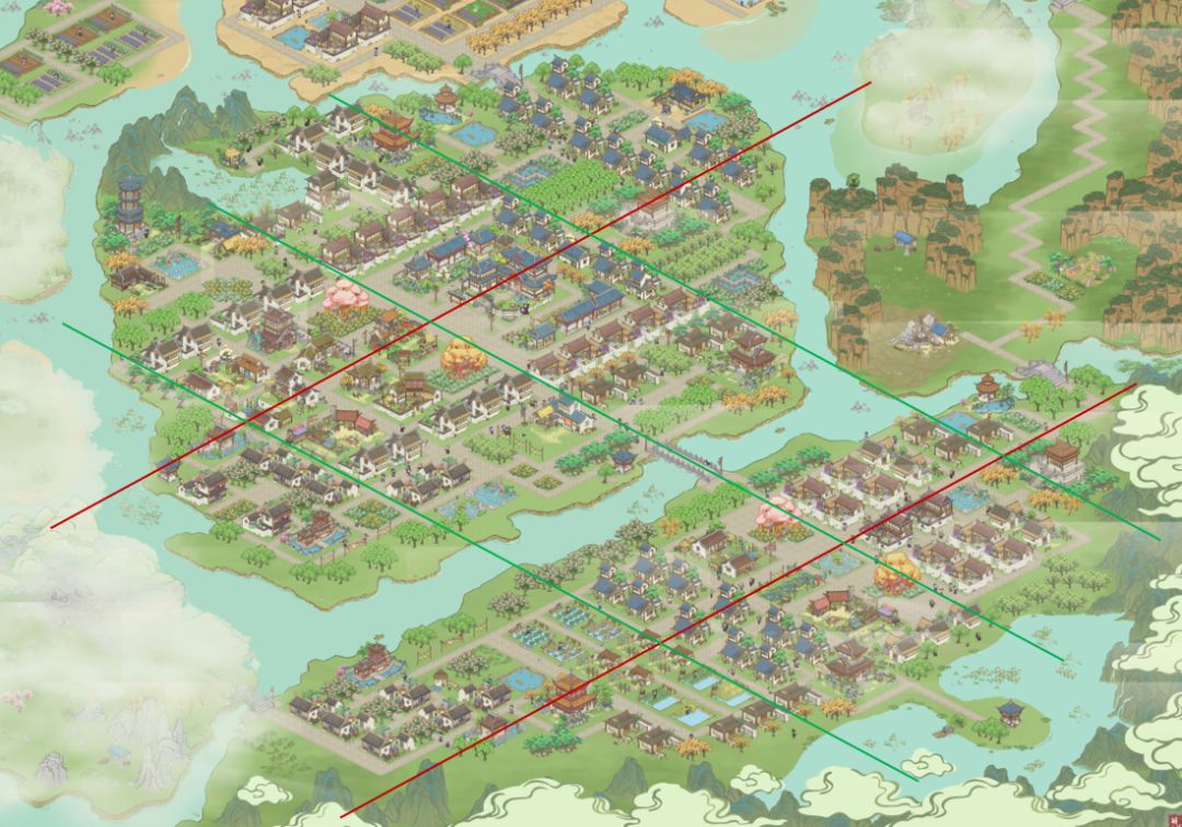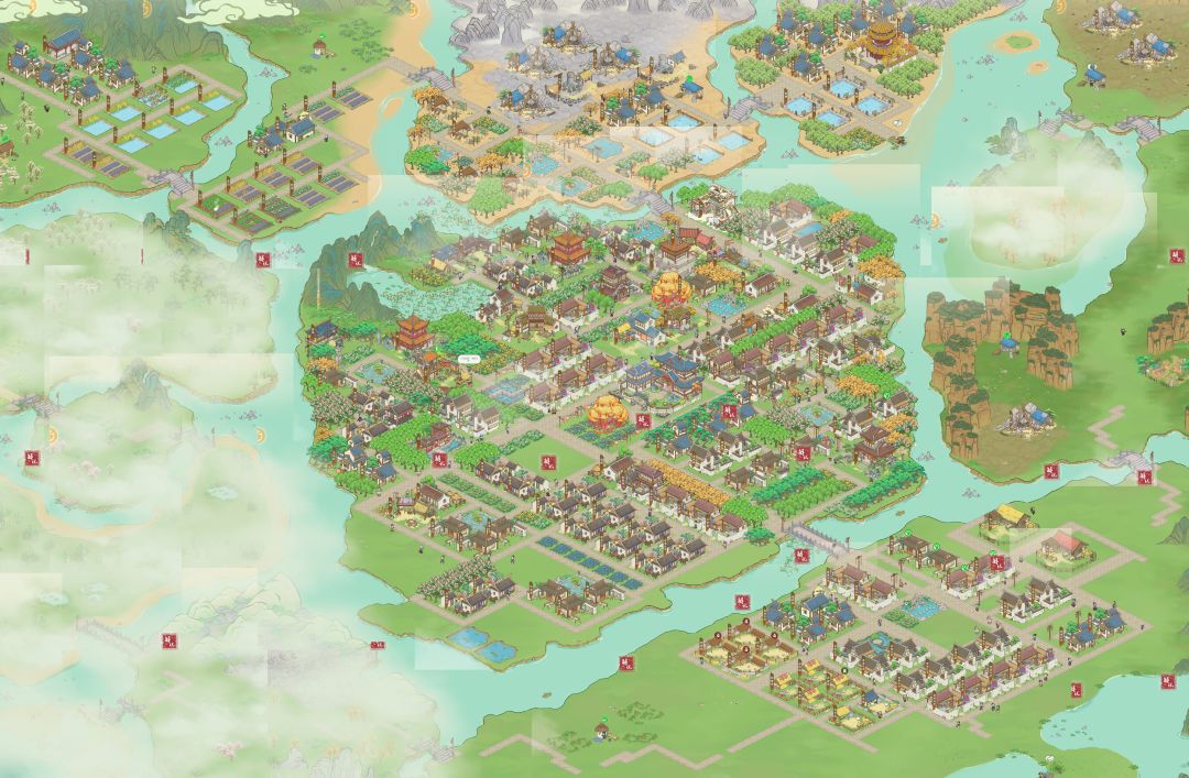 看了不是布局大赛作品,全地图型的很少,都是某一角落某一岛屿,本人花费十天上班摸鱼时间构思全地图布局,下面请大家欣赏。(全地图可以放大哦) 下面是夜景 碧玉湖,树木基本为野生,主打桃源风。 清江潭,湿地公园 秋月湾,自然风情 浮烟谷,燕草屿下半部,两处小村落,田园风 杳渺山和燕草屿上半部,集市和制造街。集中两处,方便上线买卖生产。 大贪官和后院的四房姨太太 道观 幽云涧 最后是独创的书生住宅庭院摆法