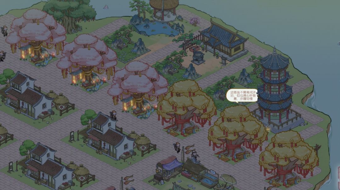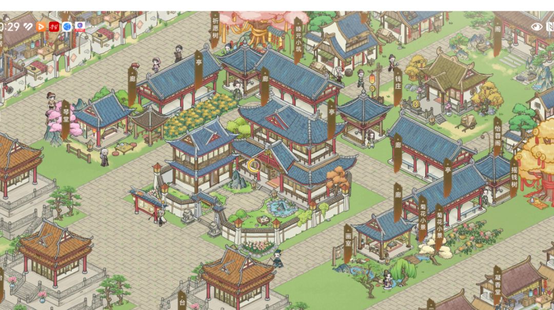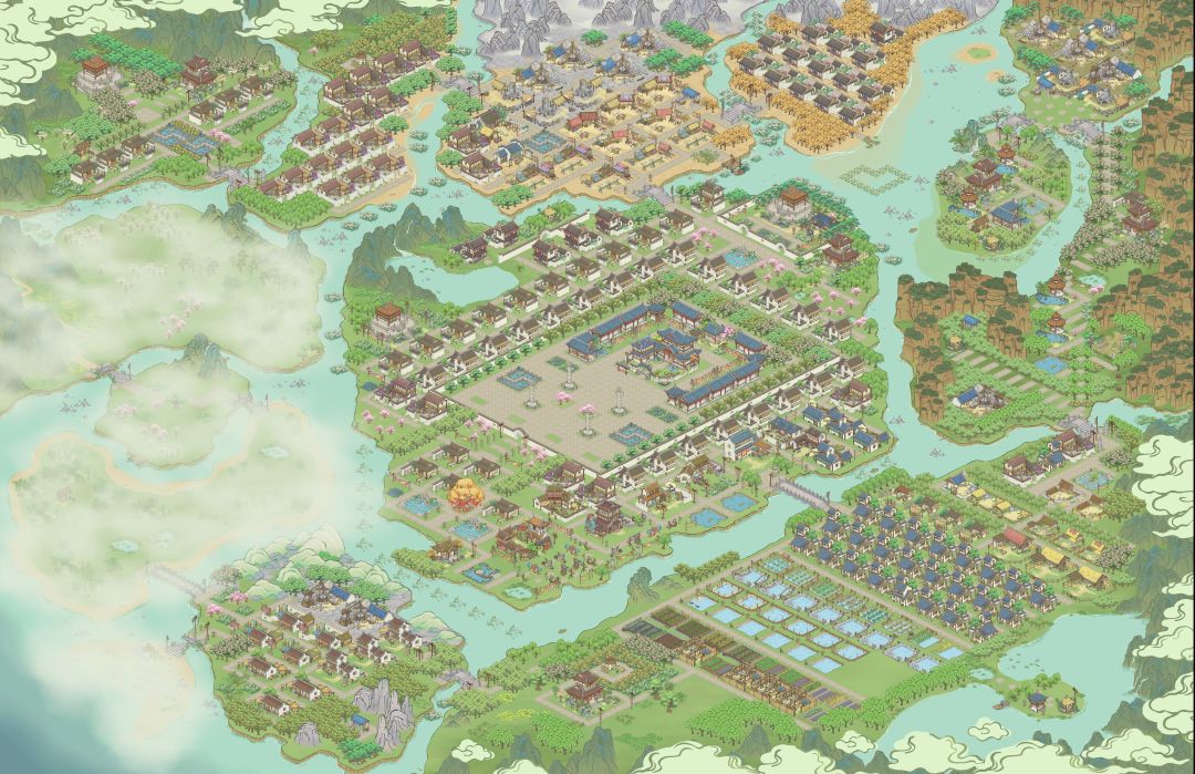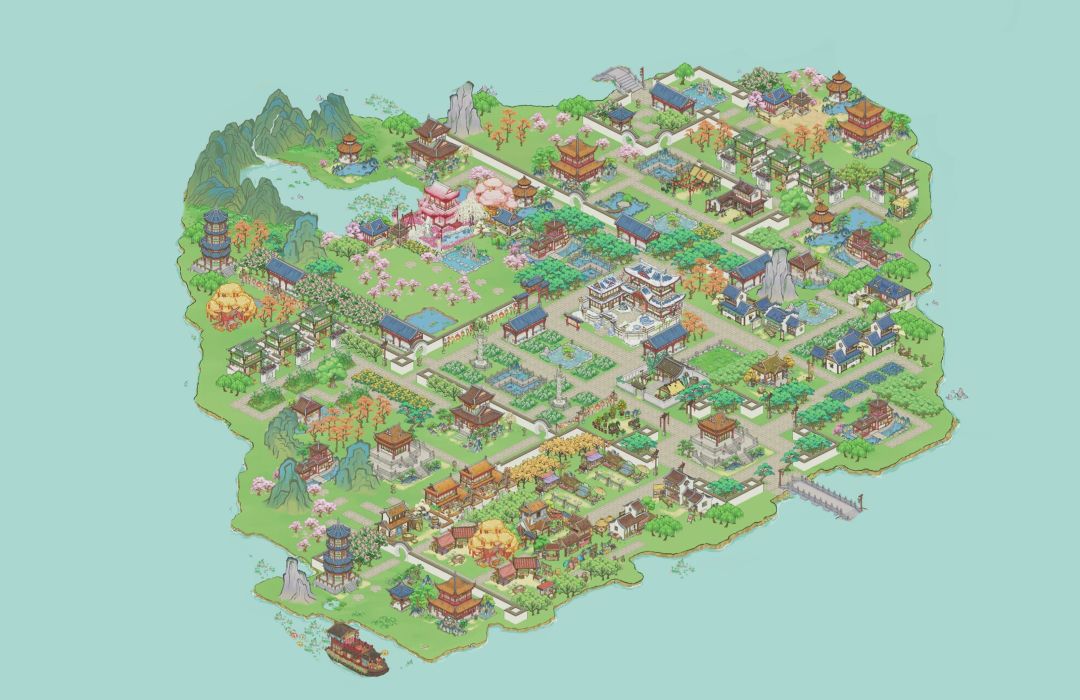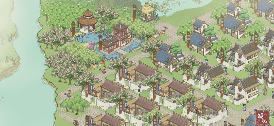 主旨思路:用植物修饰建筑和地图,使之穿插排列得更加自然和谐。 本官住所,既要有威严,又要有风光景色,故将大型建筑对称排列,植物穿插其中肆意生长。(下周再截全屏) 道观所在,背靠青山,绿水环绕,藏风聚气,得水为上,好运常伴。 青山不厌三杯酒,长日惟消书与棋 仲月霁春雨,香风生药田 安得面山临水地,种花移柳一茅庐 士人所居,自有湖水畔绿树娇花#解忧小村落布局大赛#解忧小村落布局