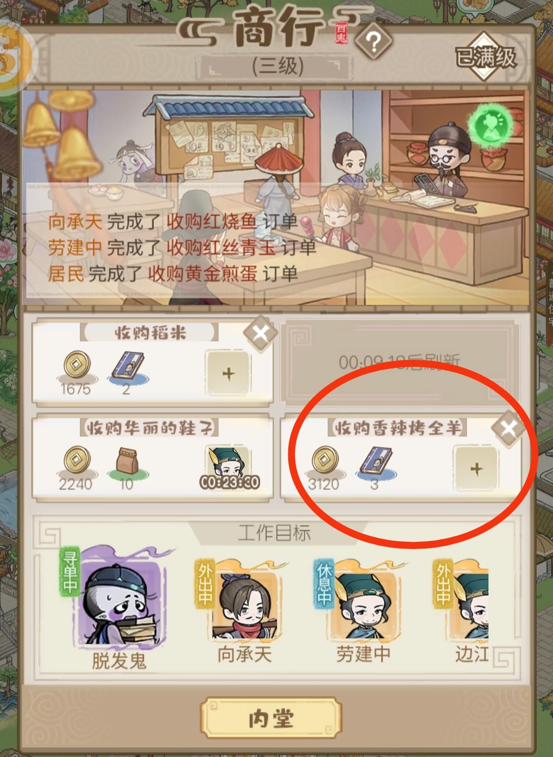 解忧小村落商行等级低时,如果多打一份工? 首先要有马夫,客栈里碰运气可招到。 然后内堂,给目标马夫安排时间长的工作。 换外堂,换人,让目标马夫去探索。 返回内堂,会发现空了位置。 再选上一个干活的。 虽然等级不足,但可以多打一份工了。