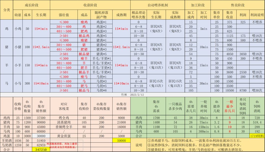 感觉种树是尊滴很挣钱,我刚开始急着肝客栈和酒馆一系列产物,后来发现种树真的香,集市一刷新就把树种子拉满,而且要升官府,(费钱)因为集市要升级什么的。 客栈和屠宰场还有养鱼养虾可以后期钱多了堆起来前期靠他挣钱是指望不上(可能我没有get到他的商机在哪)养蚕一系列裁缝铺啥的就是给居民送衣服的也不能卖,也是后期钱够了堆起来,反正我就是放着好看的。因为不管咋卖性价比都不是很高,所以有一段时间没买饲料也没