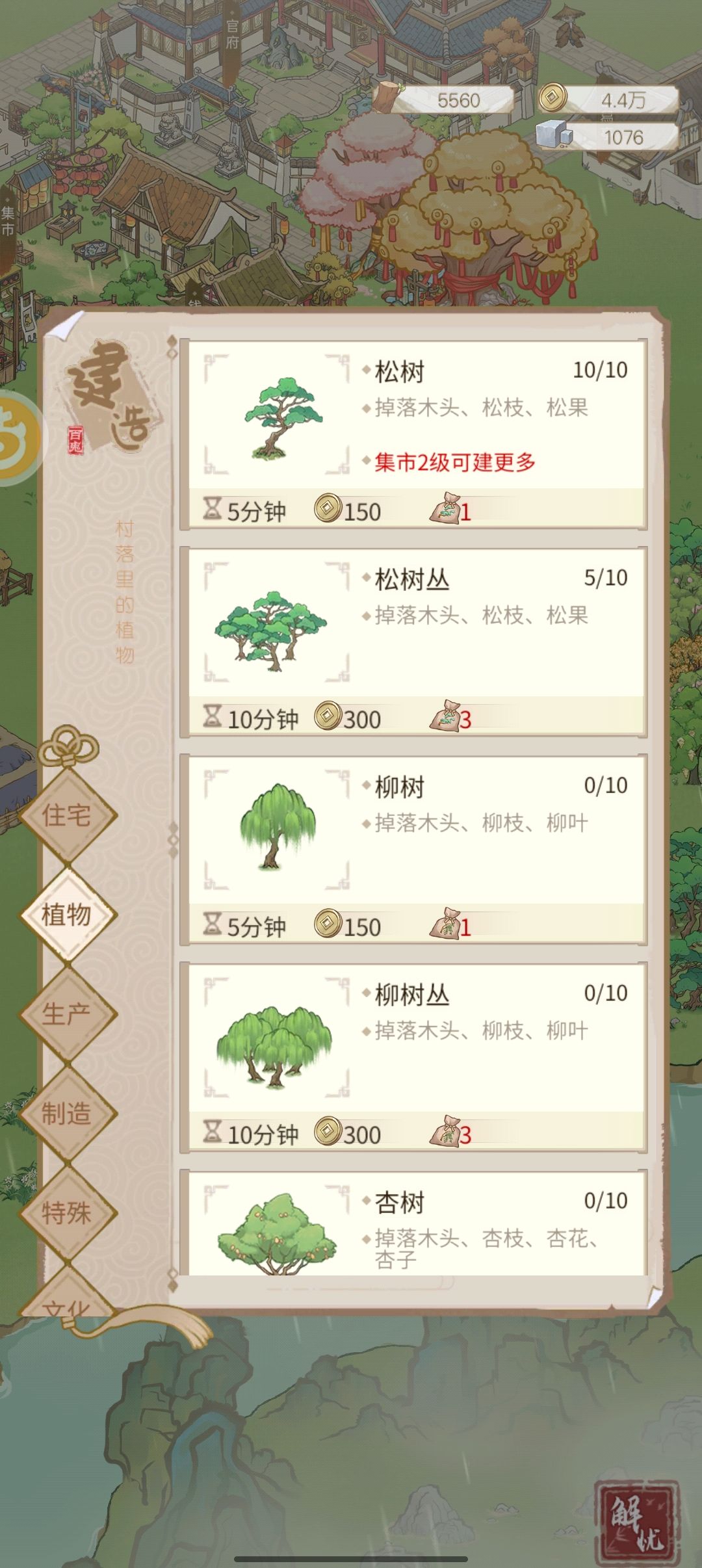 相信大家玩了两天后,都遇到个关键的问题。 没钱! 我看到甚至有人氪金买铜钱,然后对游戏破口大骂,其实大可不必如此。 接下来我将给大家讲讲,如何快速搞钱。 一.经济作物搞钱(占比50%) 金山银山不如绿水青山,开荒挖矿不如植树造林,要想富先种树! 绝大部分缺铜币的玩家,都是这个没搞。 先说预期收益,一级集市日收70w,二级集市日收200w。另外附送大量鬼怪培养材料和木材。 经济作物是什么? 见下图: