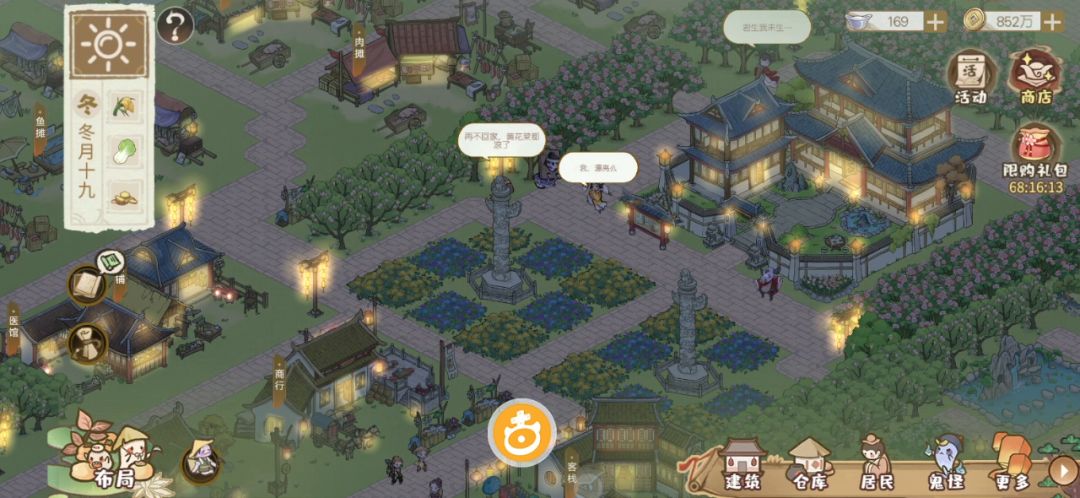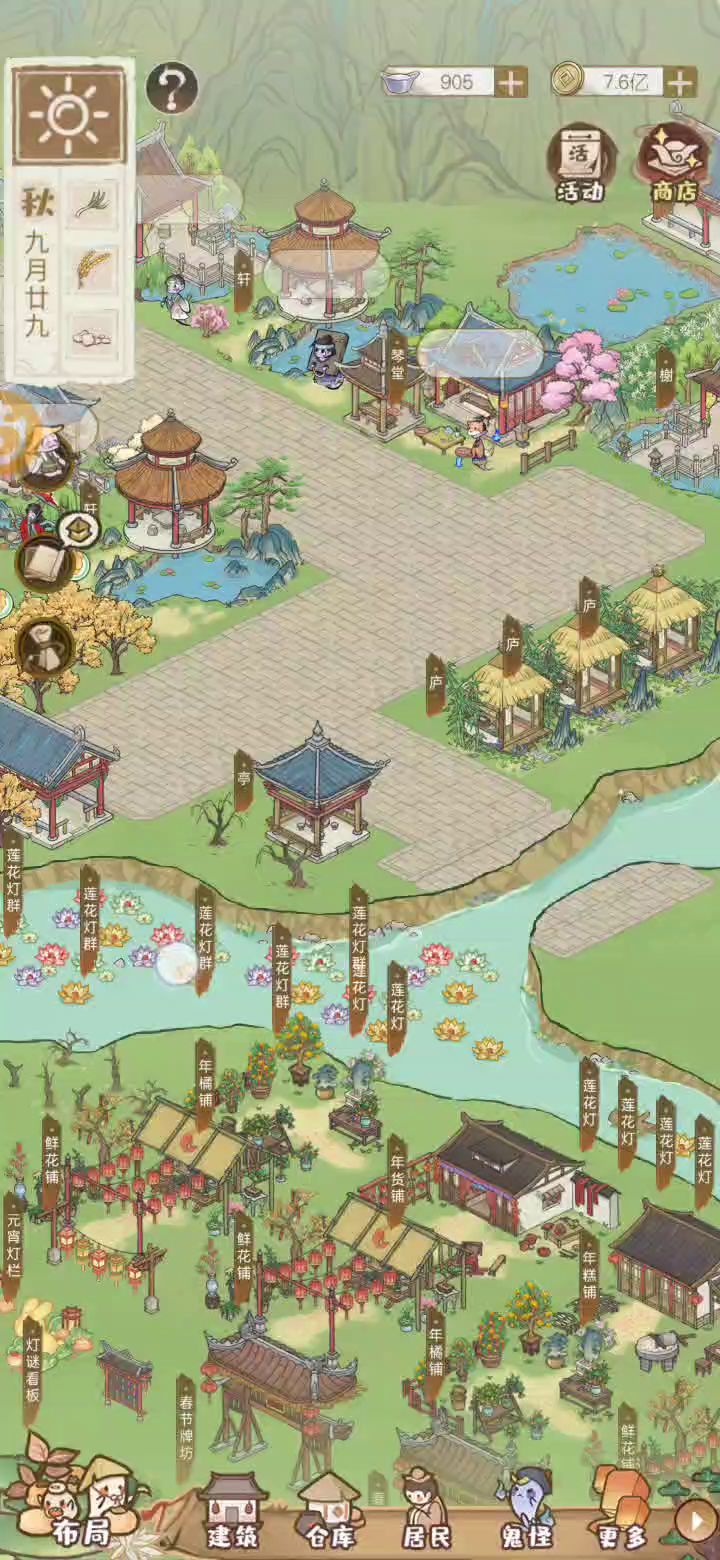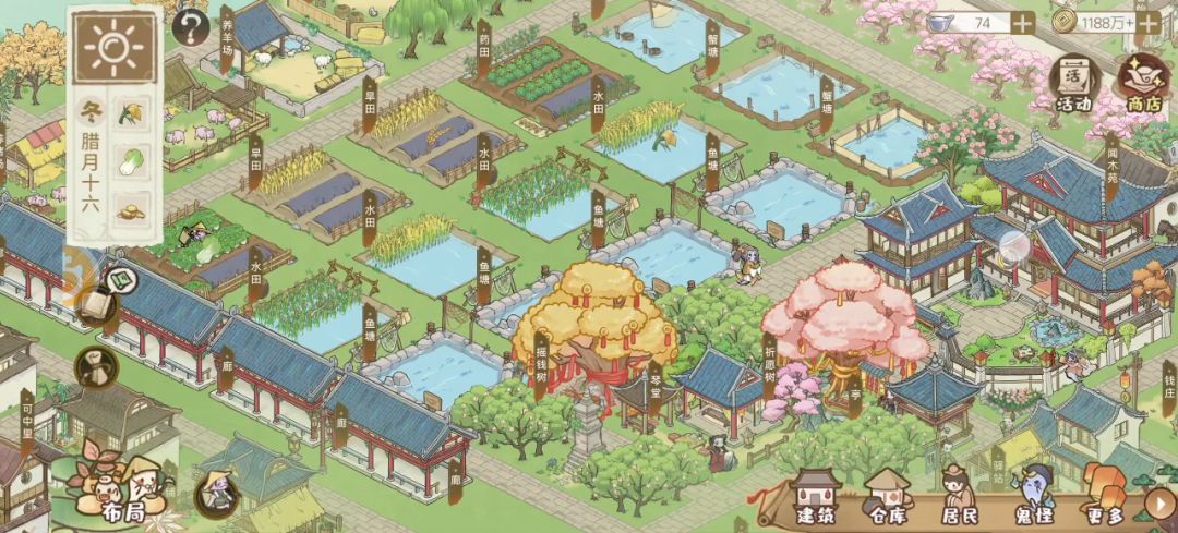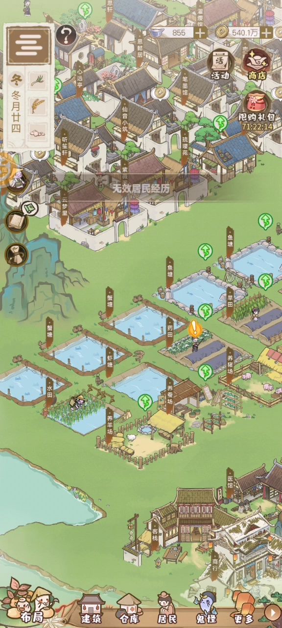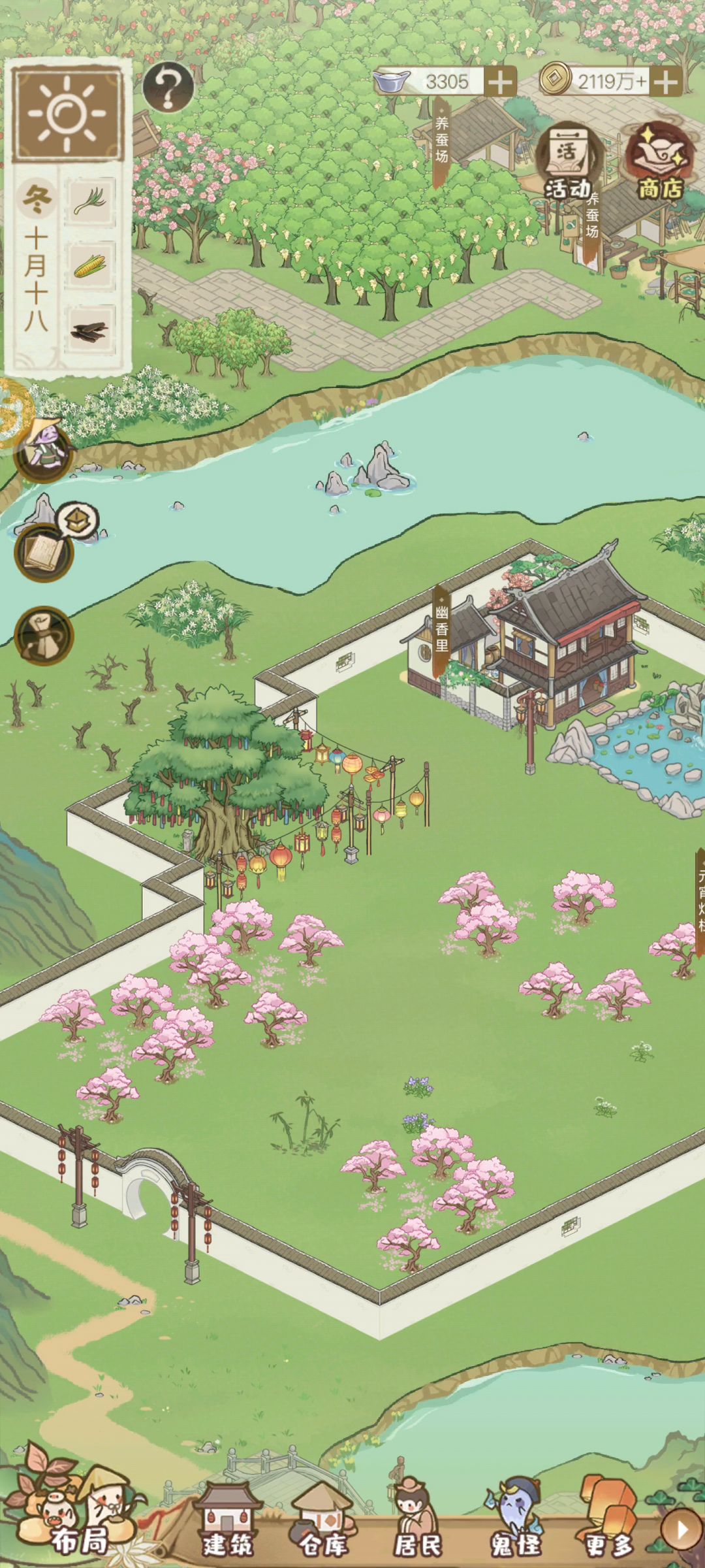 不想大费周章的改布局了,还有好几块地是空的啥都没有。。后面慢慢想怎么放置😂😂😂😂现在每天打开游戏收菜,驿站点一下,集市买点东西卖点东西,官府升个级。