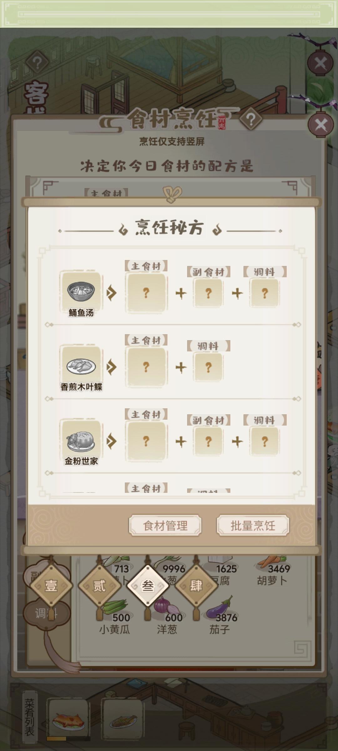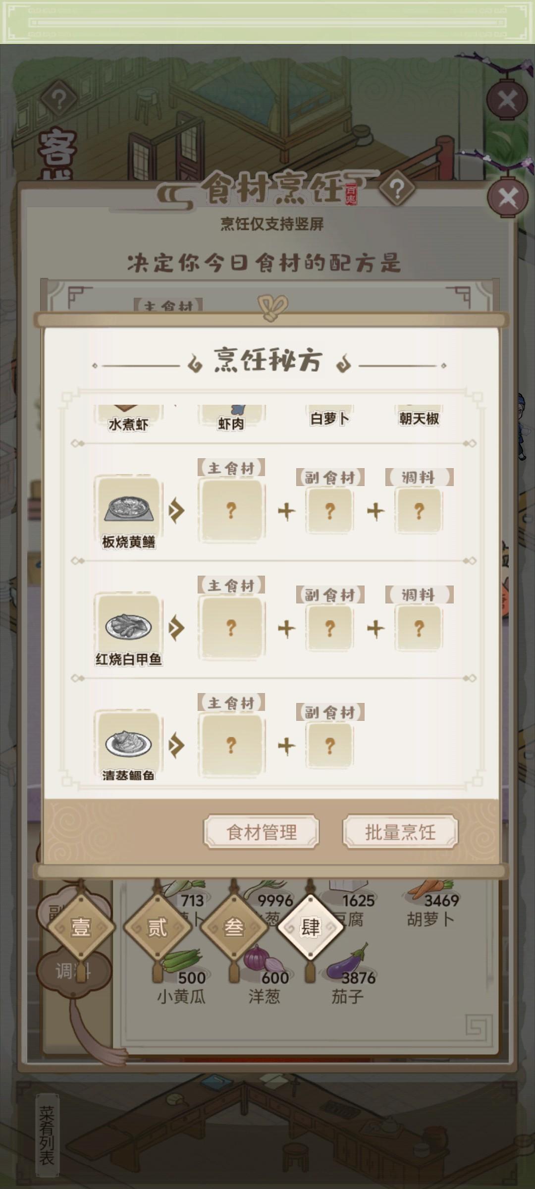 三,四级的菜,有鱼的无论咋做出来的菜都是清蒸鱼!怎么回事,还有海域,做船的材料到底在哪里