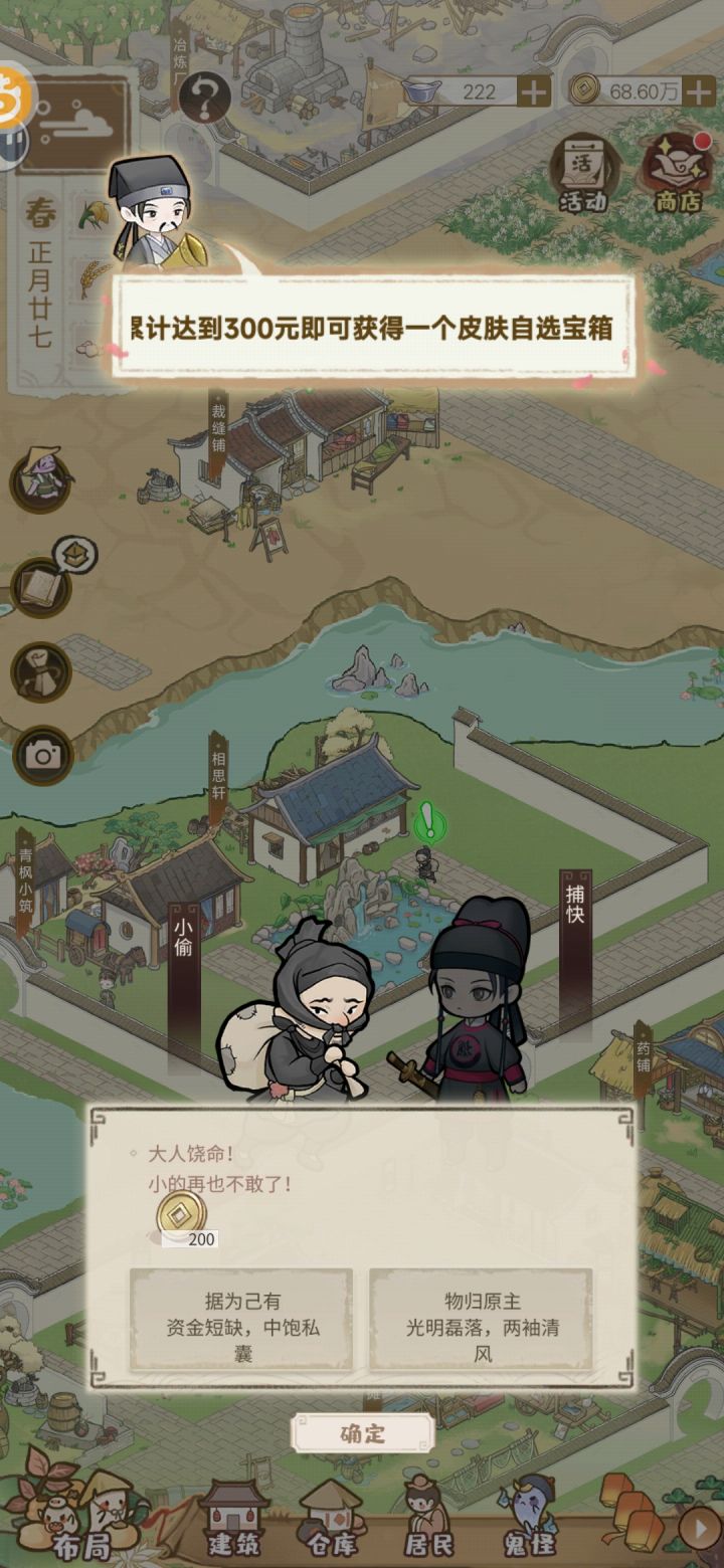 有点意思啊 npc刚巡逻完回去休息 这小偷就来最有钱的一户人家偷东西#解忧小村落