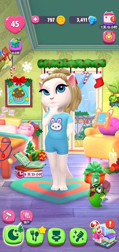 《我的安吉拉2》是一款集合换装,养宠,休闲集合于一体的游戏。游戏中安吉拉处于青年期,不再像之前的游戏那么稚嫩。但正因如此我们能够帮助安吉拉进行化妆,旅游,服装搭配等待的操作,非常有趣。在日常的互动中,比如刷牙,洗澡,吃饭等等,都能够给安吉拉带来经验值,每当经验值满了的时候,都可以获得奖励哟。 如何让安吉拉升级更快呢?我们都知道当我们帮助安吉拉喂食,洗澡,吃饭,梳毛,完成后状态值都是满的,会维持一