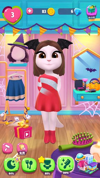 《我的安吉拉2》作为一款养成休闲游戏,受到了许多玩家的喜爱,游戏中的玩法非常多样,我们可以帮助安吉拉化妆,制作美食,跳舞等等。那么在万圣节来临前夕,我们的安吉拉会怎样去迎接这个有趣的节日呢? 进入游戏,我们可以看到整个屋子都是蛛丝密布,还有极具特色的蝙蝠贴纸,十分有节日气息。那么我们的安吉拉也可以去化妆室进行上妆,点击右下方的化妆包都能随机形成一个奇妙的妆容。 只有好看的妆容当然是不够的,化完