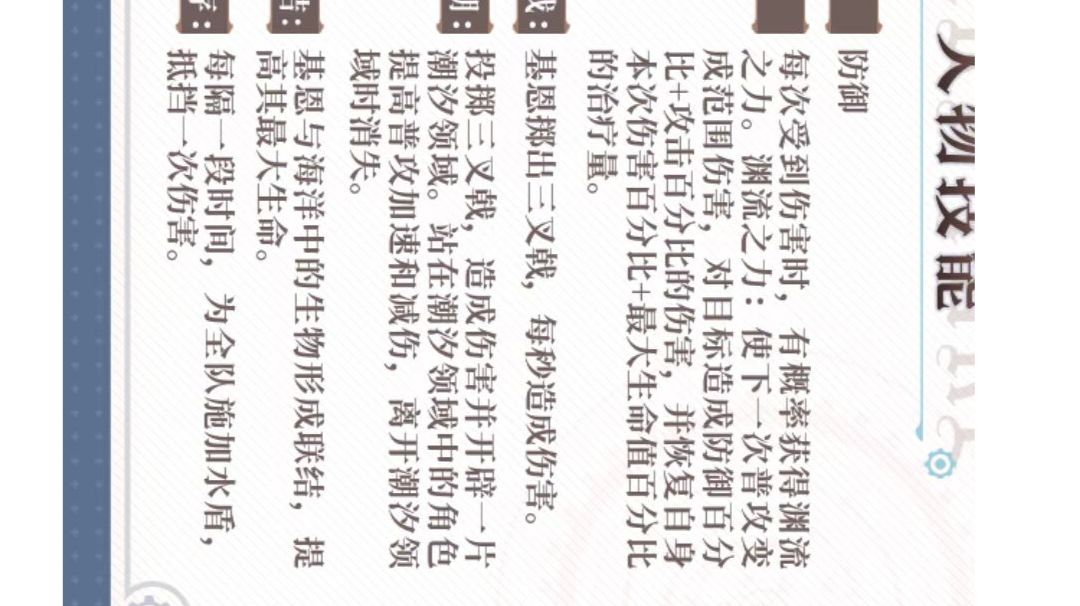 新角色剖析(与其他防御性角色比较) 天赋核心在于受到伤害有概率获得特殊普攻,以及普攻拐 1.特殊普攻能回复血量(小星云):续航一般,非要吃伤害,吃伤害还要概率获得这个普攻状态,获得了也就一下普攻 2.特殊普攻有一定防御转伤害也是只能特殊普攻触发(小凌):加强了一点输出,还是得吃伤害还看脸,咱也是不靠他输出主要是回血能提高容错 3.自动技能全队一次性盾(小尼莫):注意是一次性,这个还行就是看冷却多长