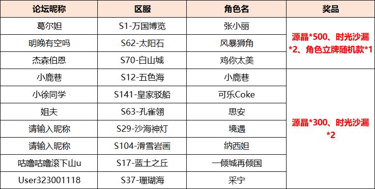 【获奖名单】分享你的过关阵容,赢取源晶!