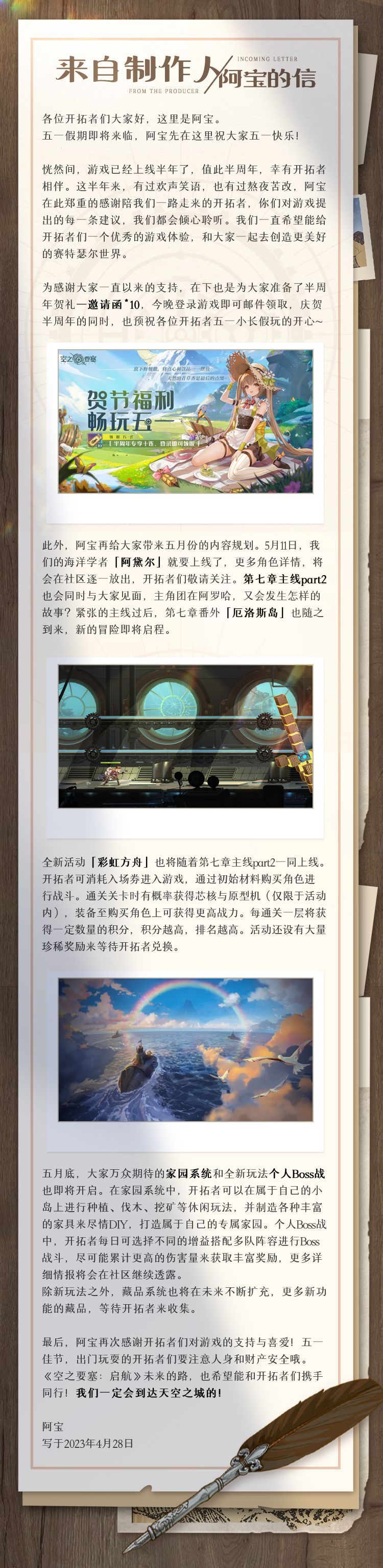 来自制作人阿宝的信 | 五一佳节与半周年贺礼,五月玩法前瞻