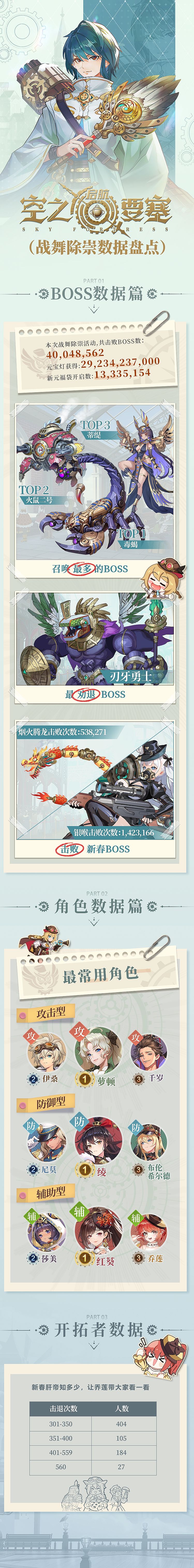 「龙腾新元」活动已经正式结束,其中的「战舞除崇」相信也是为各位开拓者带来了一个“充实”的假期,我们也密切关注着大家的反馈,后续也会对同类型活动进行对应优化调整,再一次感谢大家的支持! 道尔顿也是从阿宝哥那里咨(qiang)询(duo)到了「战舞除崇」开拓者们的“战绩”,下面就让在下与大家分享本次活动的数据盘点吧!