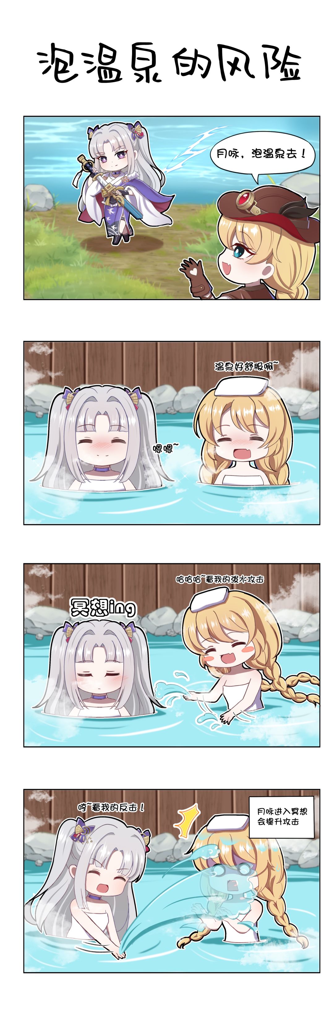 【赛特瑟尔的日常】四格漫画 - 泡温泉的风险