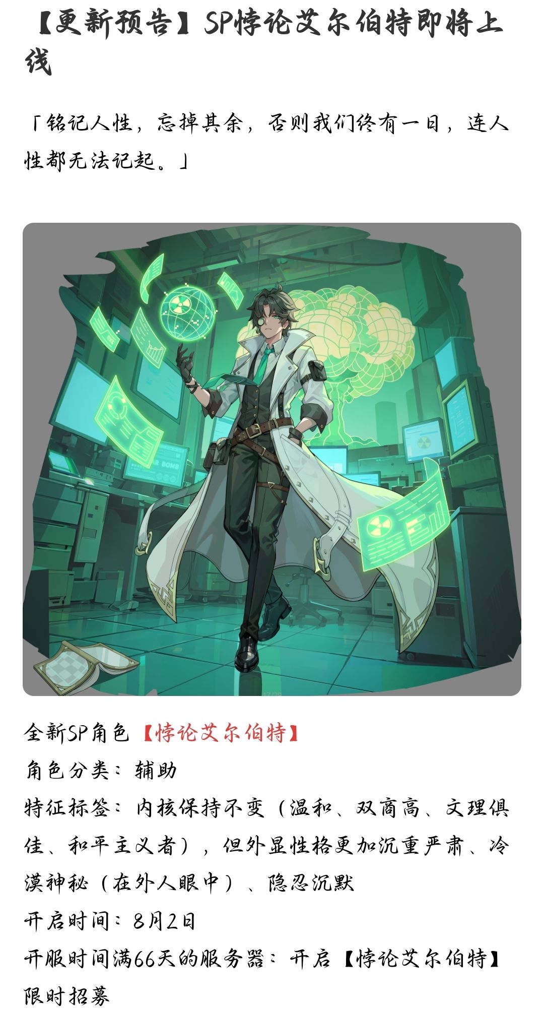首先就先说明,sp女主没那么重要!!!往后面看就明白了 1.初始号这边,阿玛莎必须有,红葵排第二。 干货建议:这服最主要就是等级。只要你混到40级,礼包就可以自选芯核,直接拿白鹅(就是图片里的哀歌)。 *白鹅的伤害触发是唯一效果,也就是说三个人都带白鹅,同时必杀,只触发一个白鹅的伤害。对单目标是两秒冷却,也就是说,你的必杀时间越长就越有利。 *之所以必选阿玛莎,点出一级专武,必杀延长0.5秒,一共