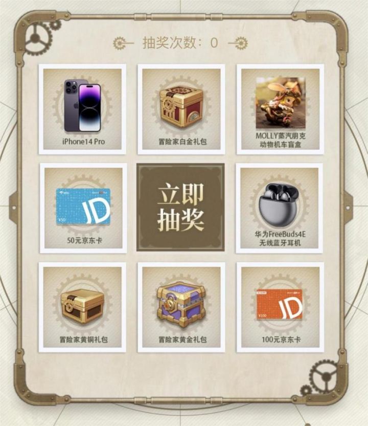 各位亲爱的开拓者:10月26日公测即将开启,大家有没有很期待?在期待公测的过程中,我们不妨先来玩点好玩的东西吧!如果你穿越到赛特瑟尔世界,你会拥有什么身份呢?←点击完成穿越→(使用移动设备体验,效果更佳哦~)选择蒸汽朋克物件,来测一测你的身份职业和隐藏技能吧!随机技能种类繁多,而且属性数值也是随机生成,各不相同!生成属于自己独一无二的技能属性!测试完成可参与抽奖,100%中奖!同