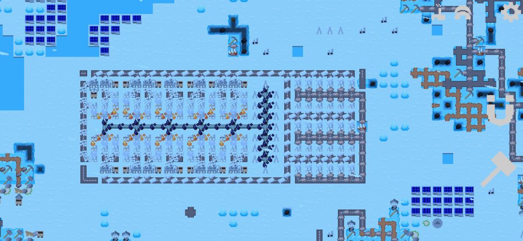 试了3矿物稀疏度的冰冻星球,矿虽然多,但地图基本没很大空地,时不时插个小矿。建议矿物稀疏度8以上15以下。 上图为15轻型材料布局,左黑T是石油塑料布局(15油泵--产30塑料),右板块为铝锭布局(30铝锭---满额港口量) 塑料布局18×9,铝矿布局6×9。 塑料布局和铝矿布局可拆分,用港口运输。塑料 T型 可以缩小到自己需求量,以适应地图。