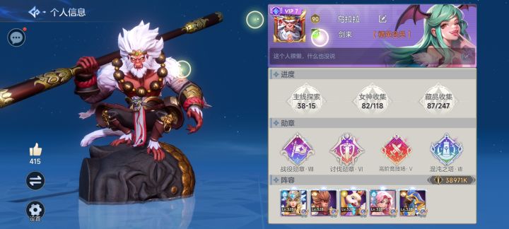 不知不觉晚了有三个多星期了。严格意义上说我也是个新手。首先,这个游戏太冷门了,论坛连水贴的都没有,我是抖音推荐下这个游戏的。首先,就是这个游戏还算良心,零氪还可以玩下去。我充了6块拿了个花木兰,现在推关和爬塔都是前15。说说阵容,我这套的核心就是双刺客加三辅助。首先大力推荐的就是猴子,看看我打180层的统计图就知道,能打能抗,配合花木兰切后排,就很舒服。花兰木就不说了,人手一只,输出就靠这两只