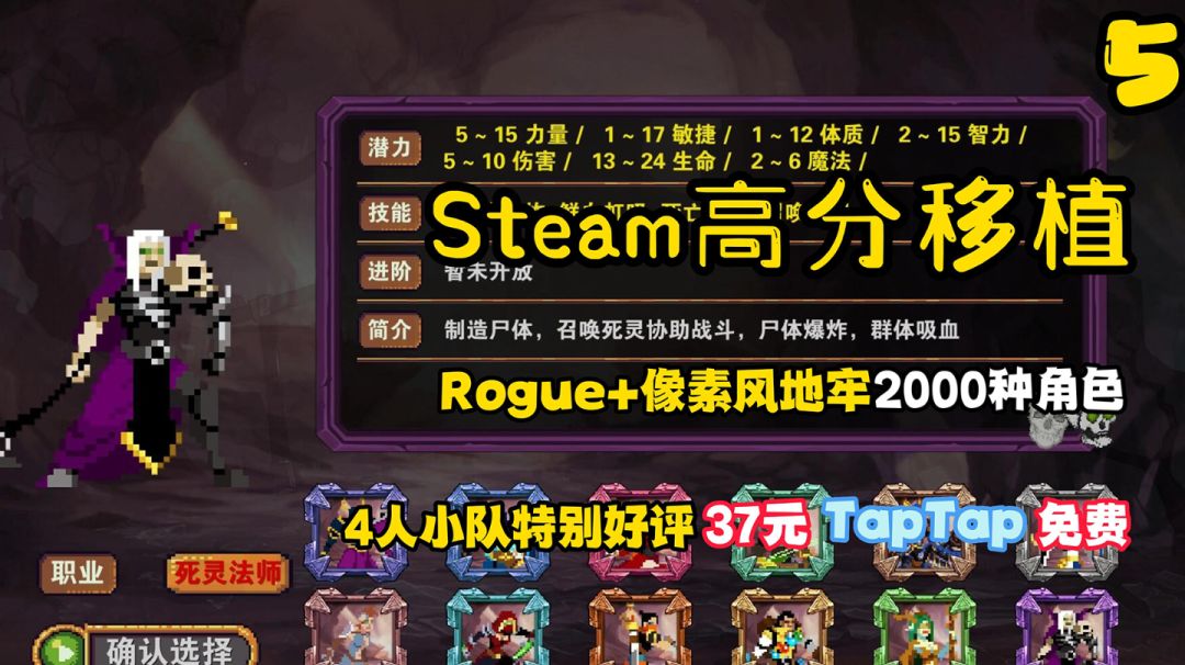 Steam高分移植5:4人战斗小队2000多种角色像素风地牢特别好评!PC37元,TapTap免费!