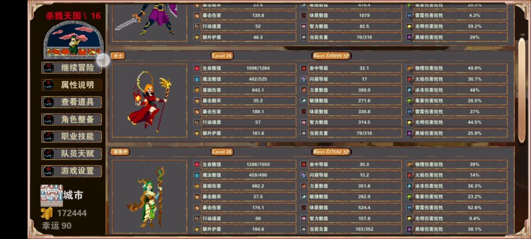 人物属性爆表是怎样的体验 开局圣器选择极限成长:人物最大属性成长,经验获取变成35%。 成果如下 1.圣骑士 血条2300+ 体质1140,天赋词条生命护盾,释放护盾全体加血740,都可以代替神职的群疗了。 2.巫师 智力470,天赋词条技能智力50%加成,相当于多了235技能伤害,巫师终极武器也就400基础伤害,数据还是很可以的。 3.术士 智力420,体质500,天赋词条精神风暴和针对,技能伤害加了220-240。 4.神职 单疗每人加血1500-1600 群疗每人加血1800-2100 不知道怎么算的,群疗治疗量比单疗还多 这个数据是本人刷了9个小时游戏时长,经验只点酒馆,20级以上升1级要大10几万经验,到24级有点肝不动了,最终boss被杀了无数次