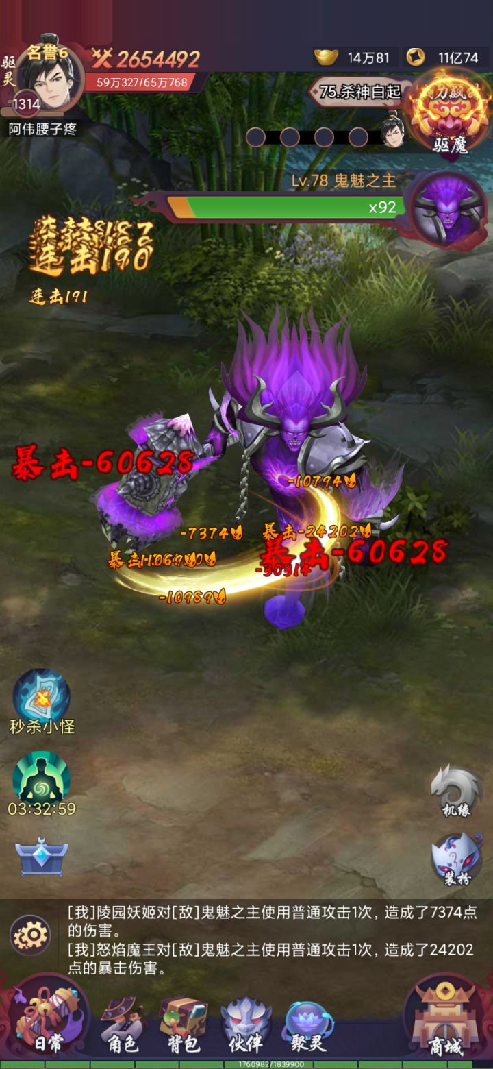 这游戏有没有时间的人都挺适合的,没时间的人用碎片时间登录收收菜能变强,有时间的一直肝也能超强,但是这游戏本质就是一个挂机收菜游戏,不推荐用太长时间,只要把每日驱魔搞完,聚灵搞一下就可以等着收菜了