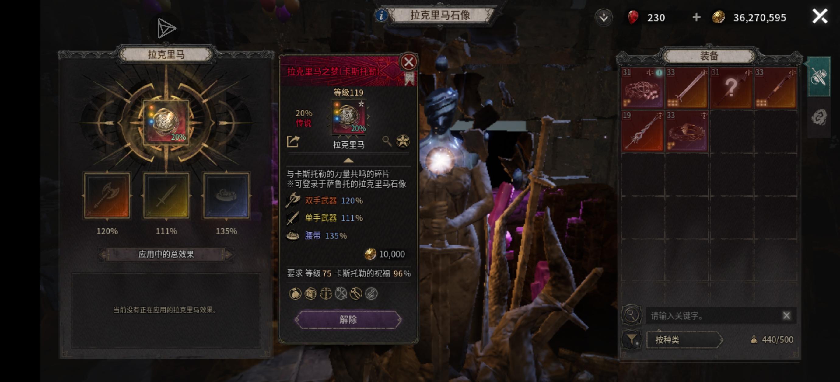 拉克里马装备等级,材料叠加数太低了
