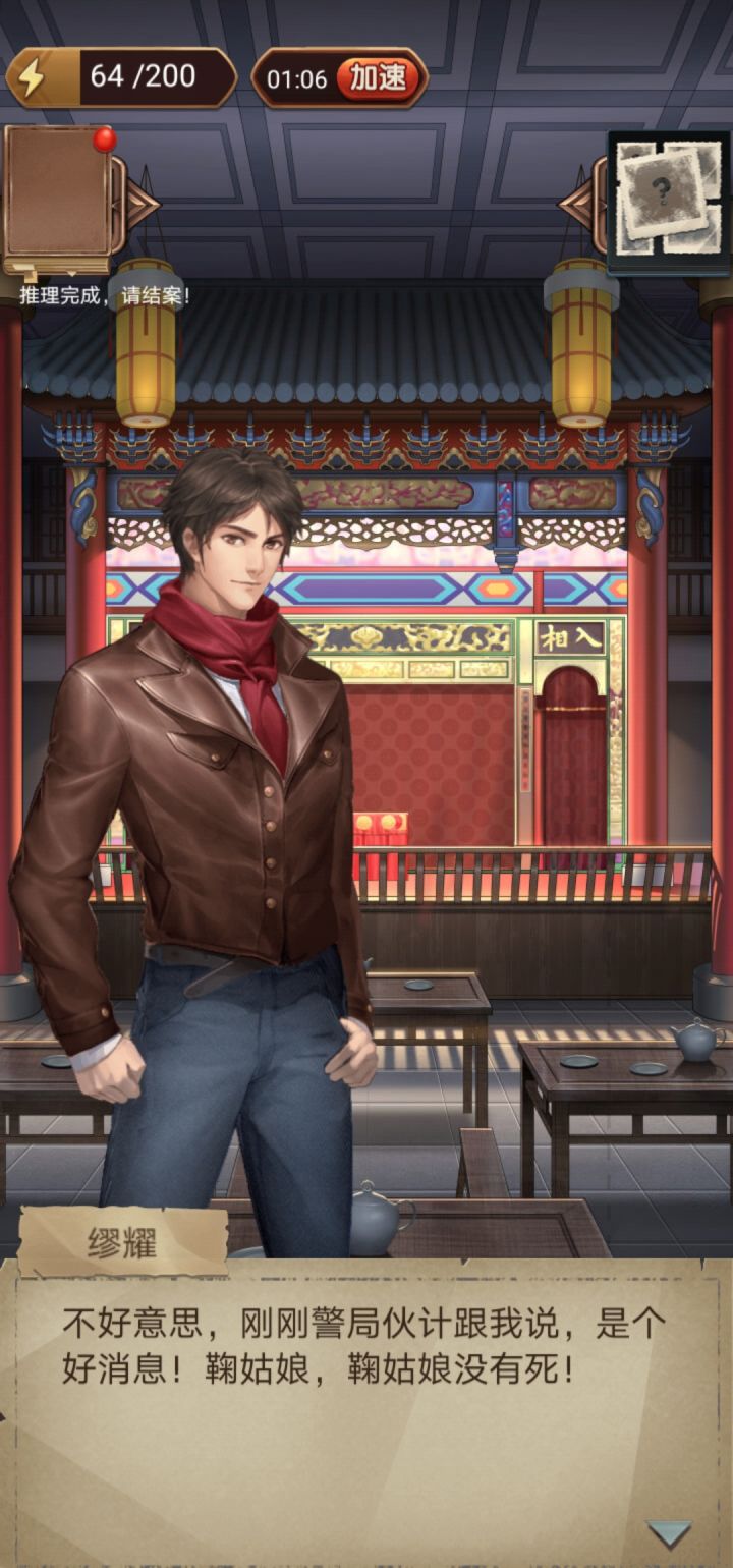 第一次做攻略,有不好的地方可以提出来,谢谢1、账房问题答案是知了、白饭、兰沐雨2、戏台问题答案是金银花、用麦秆、生漆3、梅傲雪房间(我是按选项顺序的)4、兰沐雨房间5、褚渐青房间6、鞠英霞房间推理(因为忘了哪个是触发鞠云秋的房间,索性都发了)7、鞠云秋房间箱子密码是傲雪凌霜推理问题答案梅傲雪、一家三口的合影、半面扇面(忘了里面写的是什么)8、杂役房9、乐师房问题答案