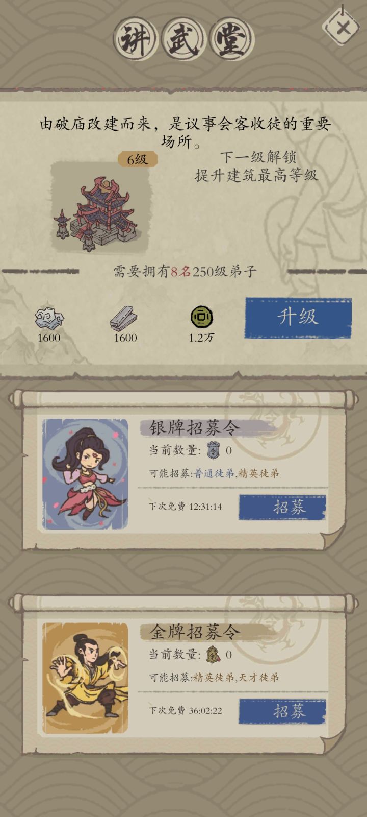 目前测试版玩儿了两天,很好玩希望提一点做为玩家的建议1.物资采集之前有兄弟提过采集逻辑的问题,会优先选择等级高的去采集,而且没有选择的权利,那为了推图基本会保证前几个天才弟子的等级最高,那么平民级的弟子就没有其存在价值,建议增加天赋系统比如平民弟子可以有增加某项物资的采集量或采集效率,或者减少出镖、抄功法的时间等提高平民弟子的价值2.功法系统这个要结合传承系统来说,我认为这是弟子养成里最有