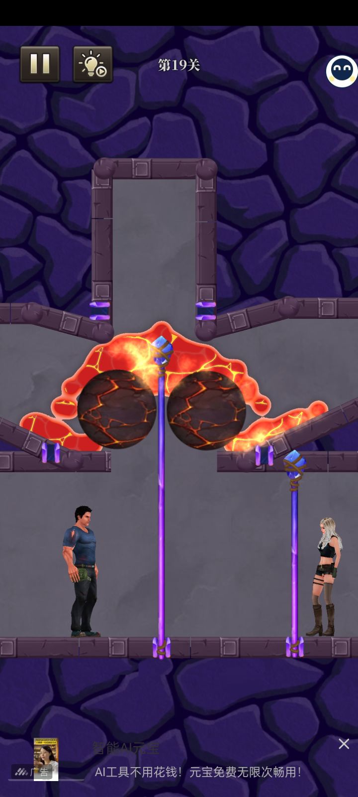 #宝藏游戏安利派对 操控肌肉猛男,在危机四伏的洞穴中解谜闯关,岩浆、野兽全不惧,只为那闪耀的宝藏!